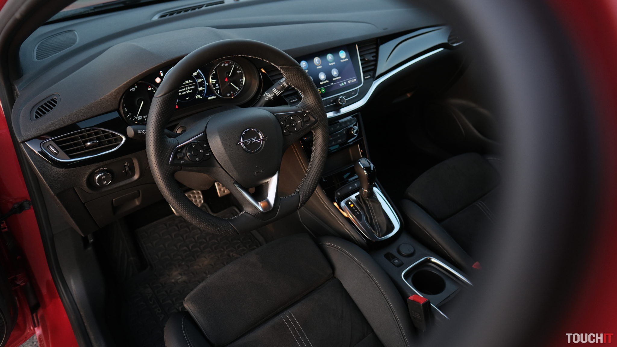 Ovládacie prvky sú dobre rozmiestnené, stále je zachovaných dostatok fyzických tlačidiel (kompletný panel klimatizácie) a zostatok nastavení a multimédií nastavíte prostredníctvom 8“ dotykového displeja so systémom IntelliLink. Tento systém je prehľadný, grafika dostatočná a konektivita nadpriemerná: okrem USB-A vstupov je samozrejmosťou Bluetooth, Wi-Fi a tým naj je podpora Apple CarPlay a Android Auto. Ak nie ste priaznivcom týchto systémov, môžete využiť natívnu navigáciu. Veľkú pochvalu si zaslúži Astra za takmer dokonalý združený prístrojový panel, ktorý je kombináciou analógových prvkov a displeja v strednej časti. Okrem toho, že ponúka dostatok nastavení a možnosť konfigurácie niektorých systémov, tak ponúka aj kompletný a dovolím si tvrdiť, že dokonalý prehľad o stave vozidla. Niektoré nové autá nezobrazujú ani teplotu chladiacej kvapaliny, zatiaľ čo tu máte prehľadné informácie o rýchlosti, otáčkach, teplote oleja, vody, ale aj o napätí akumulátora.