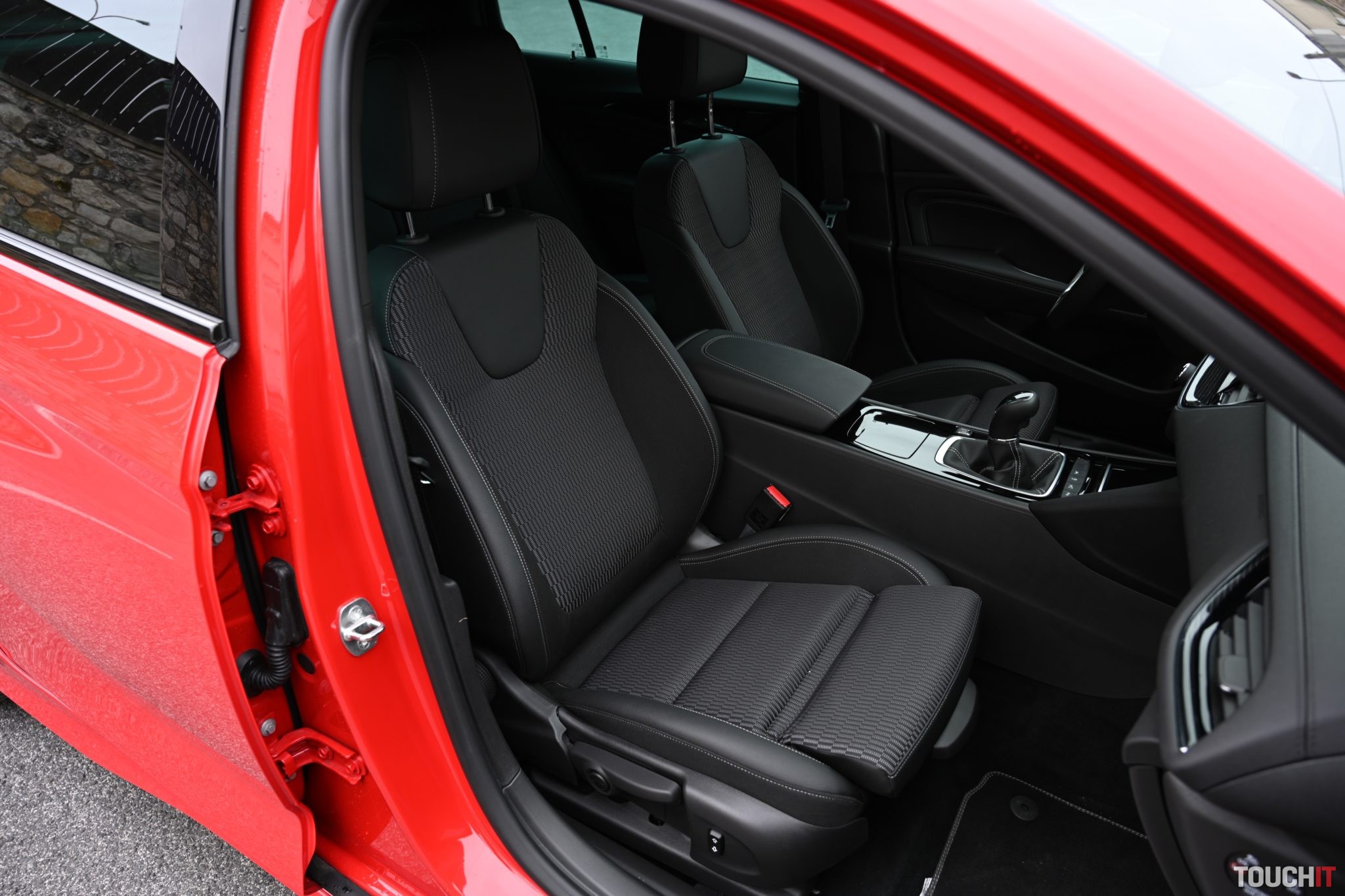 Teraz si poďte hačkať dnu.Interiér nemá s predošlými generáciami takmer nič spoločné! Od šoféra, až po zadných pasažierov je k dispozícii prekvapivo veľa miesta. Skutočne som bol prekvapený, aká vzdušná dokáže Insignia byť. Interiér je veľmi pekne spracovaný, s dôrazom na kvalitnejšie materiály a celkové prevedenie v každom detaile. Veľké veci spravil Opel s týmto modelom. Osobne obľubujem vyšší stredový tunel, ktorý tu samozrejme je a dobre dostupné/rozložené ovládacie prvky, aby som nemusel nič hľadať. Po pár dňoch som presne vedel, kde čo je a vôbec som sa počas jazdy nezabával pátraním po tlačidlách – praktické spracovanie orientované na človeka – šoféra! Pozitívom je aj fakt, že si máte kde odložiť menšie veci ako telefón, peňaženku, kľúče a nepochybne aj dobrú kávičku. Orientácia na zvyšok posádky je iná – zameraná na maximálny priestor a pohodlie. Spolujazdec má nepochybne veľa životného priestoru, priečneho aj pozdĺžneho, ale čo tí vzadu? Milujem túto disciplínu! Mám 2 metre a vždy sa chcem zmestiť sám za seba, ideálne tak, aby som po vystúpení z auta nemusel ísť na rehabilitáciu. Čo sa tu stalo? Sadol som si za seba a mal som ešte miesto pred kolenami! Nad hlavou to kvôli zvažujúcej sa streche nebolo až tak ideálne, ale nešúchal som sa. Krásny priestor – nie len pre jedného Mira, ale pre dvoch a jedného polovičatého. Ak sa sem posadia 3 osoby bežného vzrastu (napr. Rasťo Chvála 🙂 ),tak sa nebudú extrémne tlačiť. Dobre, ten v strede to nebude mať ideálne, ale inak pohoda.