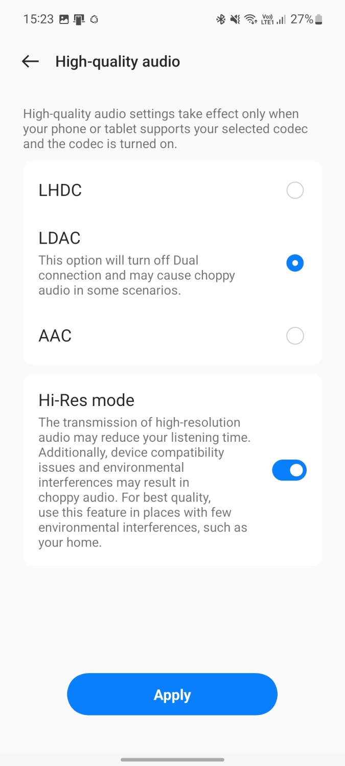 Pokiaľ však chcete využiť plný potenciál týchto slúchadiel, uistite sa, že aj váš telefón podporuje kodeky LDAC a LHDC. Inak si budete musieť vystačiť „iba“ s AAC, čo je počuť.