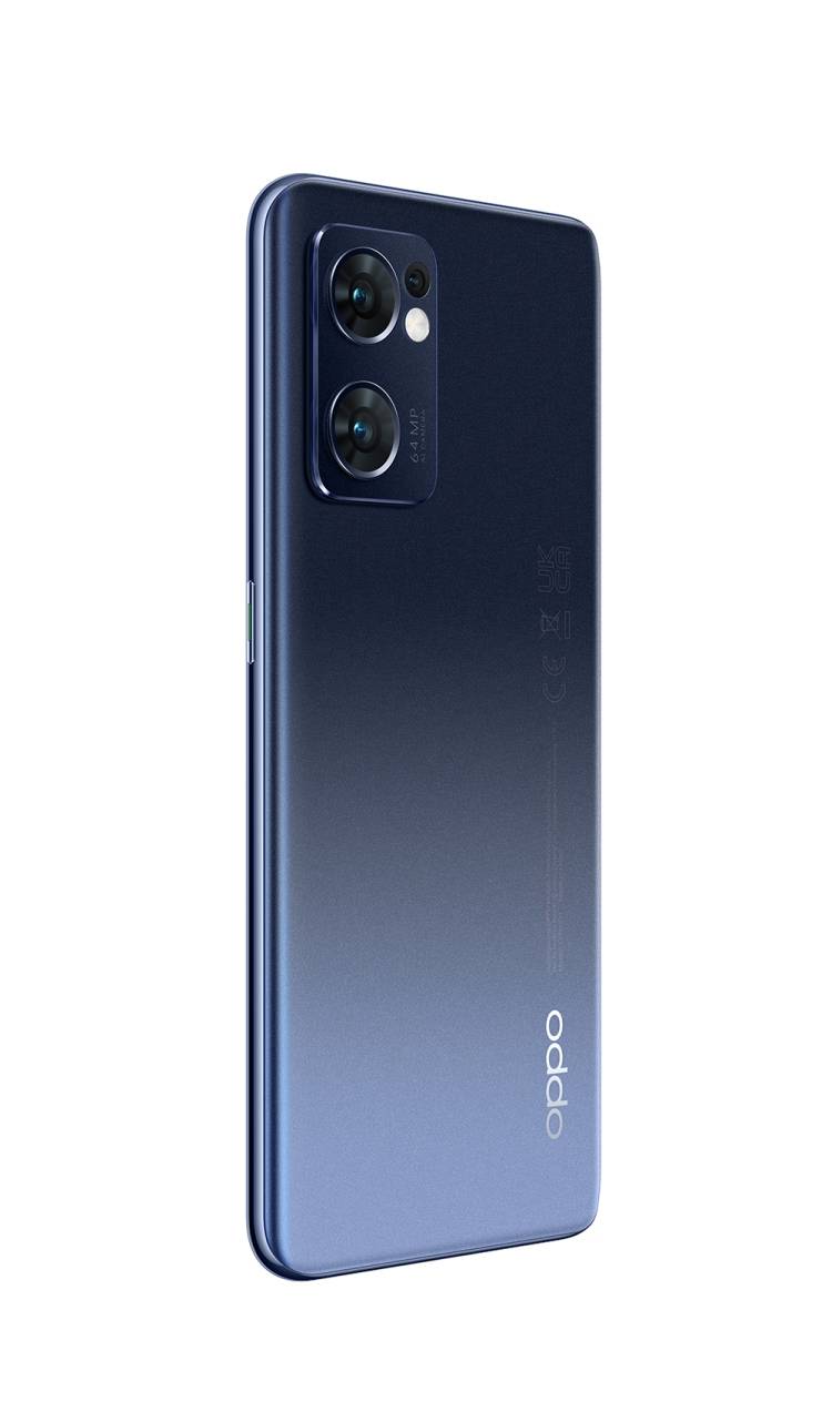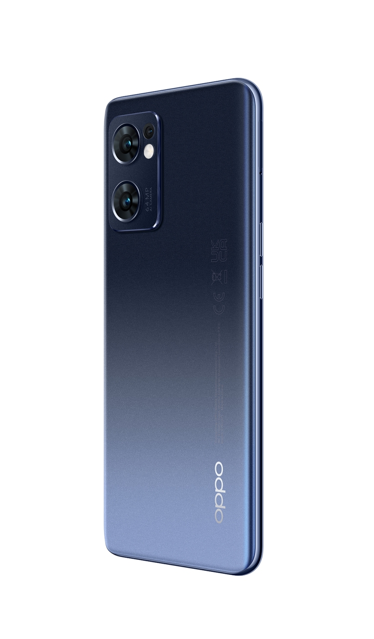 OPPO Reno7 5G nadväzuje na ikonický design radu Reno svojim ultratenkým telom. Má hrúbku 7,81 mm a hmotnosť 173 gramov. Reno7 5G je taktiež opatrený efektom OPPO Glow a dodáva sa v dvoch farbách: Startrails Blue a Starry Black.