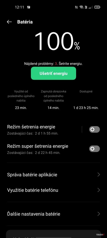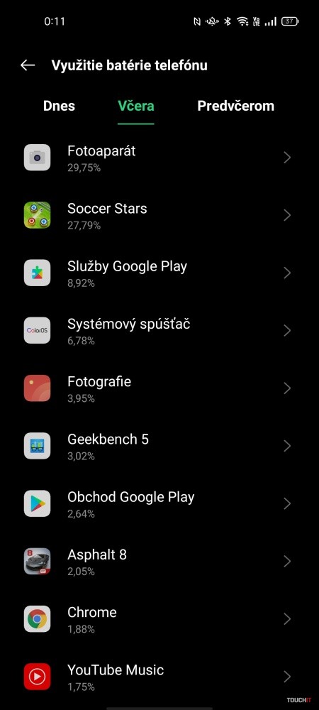 Batéria má kapacitu 4300 mAh, pričom vďaka dobrej optimalizácii nie je problém dosiahnuť až dva dni používania. Počas testovania som smartfón vôbec nešetril. Neustále som fotografoval, nahrával videá, počúval hudbu a hral hry. Aj po takto náročnom dni batéria Reno5 5G sa zastavila na 24 %, pričom čas zapnutej obrazovky bol 5:40 a nabíjanie prebehlo takmer pred 23 hodinami. Pokiaľ vezmem v úvahu aj to, že smartfón opäť doplna nabijem iba za pár minút, ide tak o jednu z hlavných predností, ktorá tento model posúva pred konkurenciu.