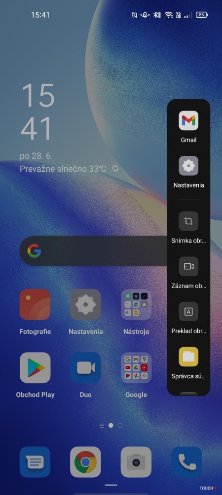 Oppo (rovnako ako OnePlus) ma prekvapilo odladeným softvérom. Na nič nie je potrebné pri používaní telefónu čakať, všetko ide hladko a bez akéhokoľvek zaváhania. V zariadení sa samozrejme nachádza Android 11 s júnovou bezpečnostnou aktualizáciou. V nastaveniach je možné vykonať detailné prispôsobenie prostredia podľa požiadaviek používateľa. Je tak možné si vybrať nový vzhľad motívu, tapety a Always On displeja. Pre ešte lepšiu personalizáciu je možné si zmeniť aj štýl ikon, rozloženie aplikácií, animáciu odtlačkov prstov, dominantnú farbu a ďalšie. Ovládanie gestami je plynulé a presné. Nestalo sa, že by gesto nebolo správne rozpoznané. Celkovo je používanie Oppo Reno5 5G veľmi intuitívne a komfortné. K tomuto účelu je možné na domovskej obrazovke vyvolať ponuky skratiek – tzv. Inteligentný bočný panel, ktorý slúži na spustenie rýchlych nástrojov alebo aplikácií, ktoré sa zobrazia v plávajúcom okne alebo na celej obrazovke.