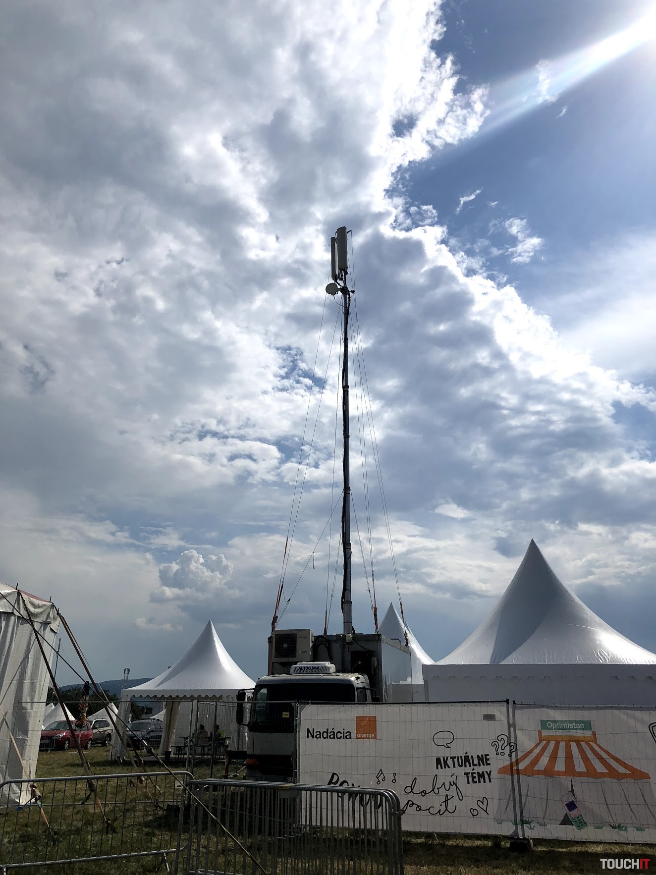 Vľavo mobilná BTS stanica, vpravo Wi-Fi zóna na Pohode 2018