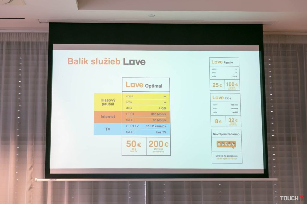 Balík služieb Love sa bude dať objednať od 22. septembra 2017 a obsahuje hlasový paušál s nekonečnými volaniami na Slovensku a do celej EÚ, pevný internet a digitálnu televíziu.