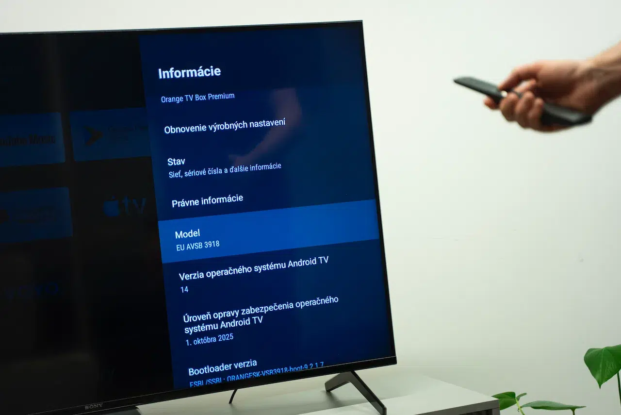 Orange TV Box Premium využíva operačný systém Android TV 14. Počas testovania dostal aktualizáciu s bezpečnostnými záplatami k 1. októbru 2025, čo je lepší výsledok v porovnaní s lacnejším Xiaomi TV Stickom 4K druhej generácie, ktorý som počas testovania používal paralelne.