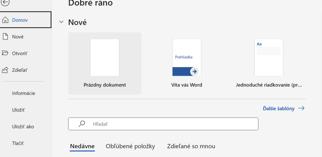 Pred niekoľkými rokmi prešlo ukladanie a otváranie súborov zmenou a zobrazuje sa na takzvanom Backstage paneli. Je to okno, ktoré sa zobrazí ťuknutím na kartu Súbor. Nový dokument sa predvolene ukladá do predvoleného priečinka v službe OneDrive. To ale nemusí byť praktické, keďže možno chcete využiť iný priečinok, a tak je potrebné sa preklikať k inému priečinku. Toto zdržuje a núti vás predvolene ukladať na OneDrive.