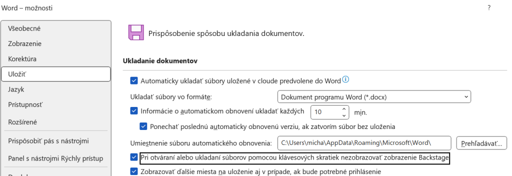 Položku nájdete v Súbor – Možnosti – Uložiť.