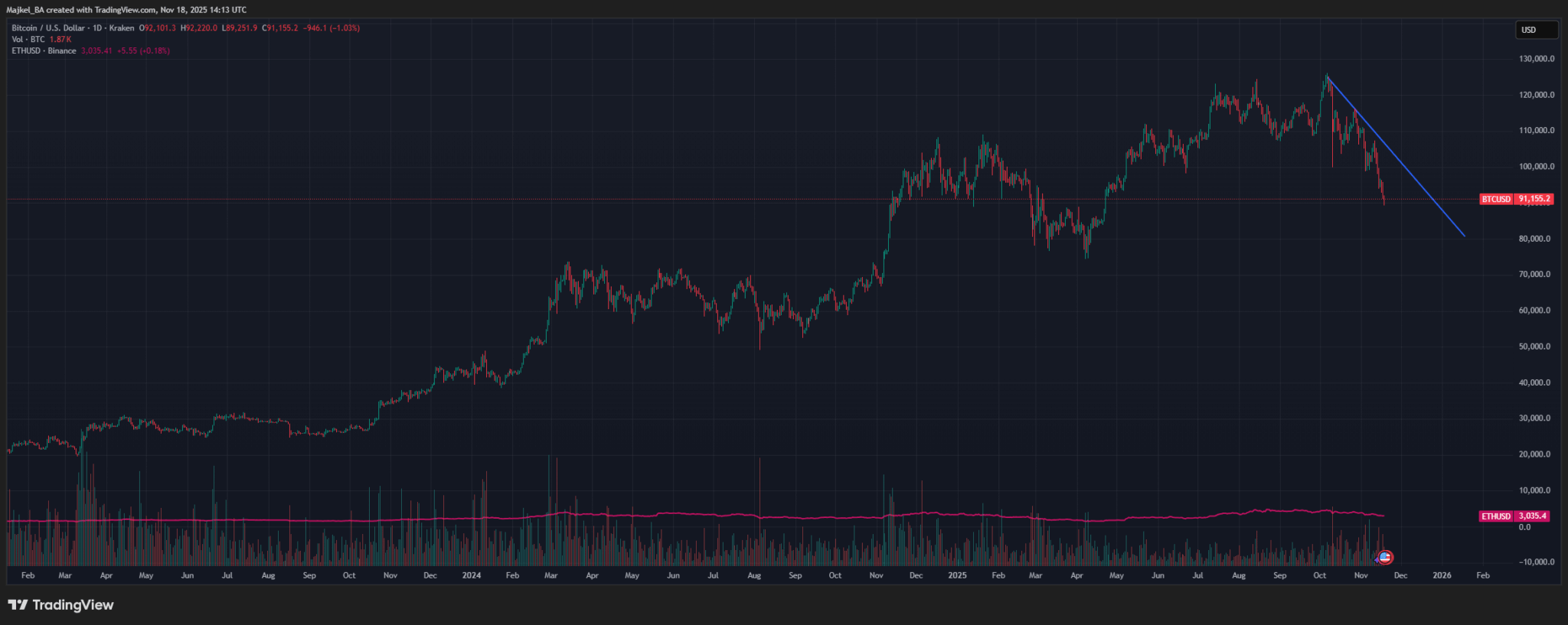 Je to takmer isté a v lete sme videli ATH na 125k za 1 BTC. To bol top a ak sa naozaj potvrdí, že máme bullmarket za sebou. Trump ohlásil dávky pre občanov na úrovni 2000 dolárov na osobu, FED možno bude znižovať úrokové sadzby, no to bolo predzvesťou ďalších poklesov.