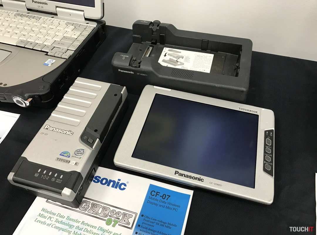 V roku 2001 bol predstavený ToughBook CF-07, ktorý mal odnímateľný panel obrazovky a komunikoval s počítačom do vzdialenosti až 50 metrov. Takto začala éra mobility a flexibility pri práci v sťažených podmienkach.