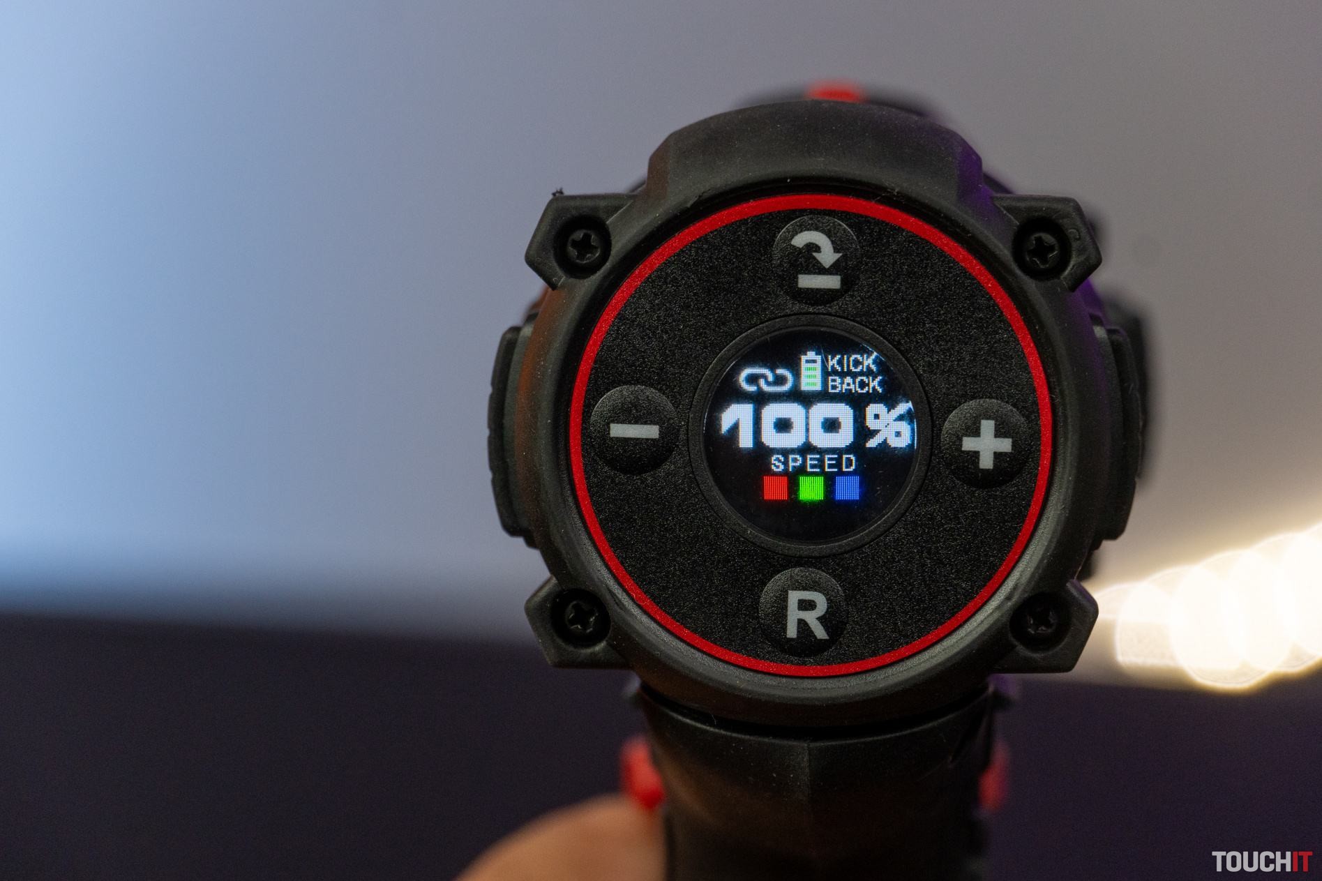 Pri práci môžete využiť aj LED svetlo, jeho farbu je možné nastaviť v aplikácii (viď ďalej). Na vŕtačke nájdete dva praktické magnetické držiaky bitov. Rozsah upnutia rýchloupínacieho skľučovadla je od 1,5 do 13 mm.