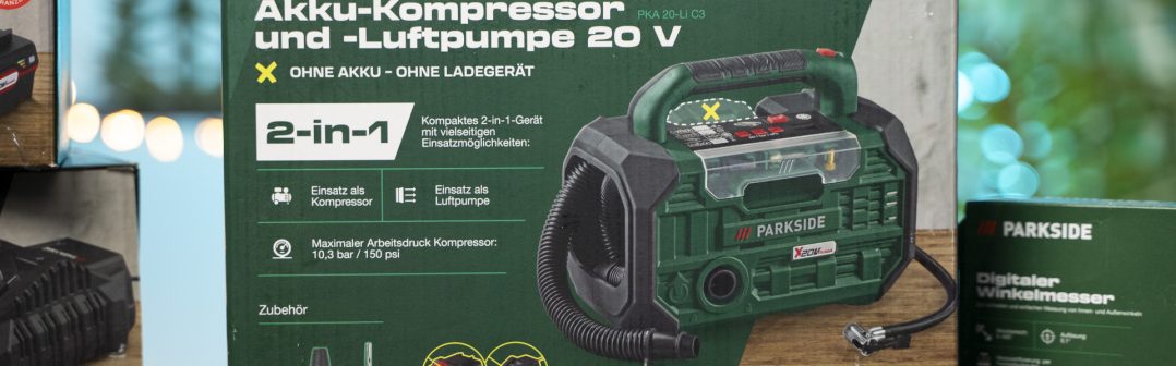 PARKSIDE Aku kompresor a pumpa s označením PKA 20-Li C3 je šikovné zariadenie ak potrebujete nafúkať loptu, koleso na bicykli, nafukovačku, vyfúkať nečistoty alebo vodu z potrubia pred zimnou sezónou.