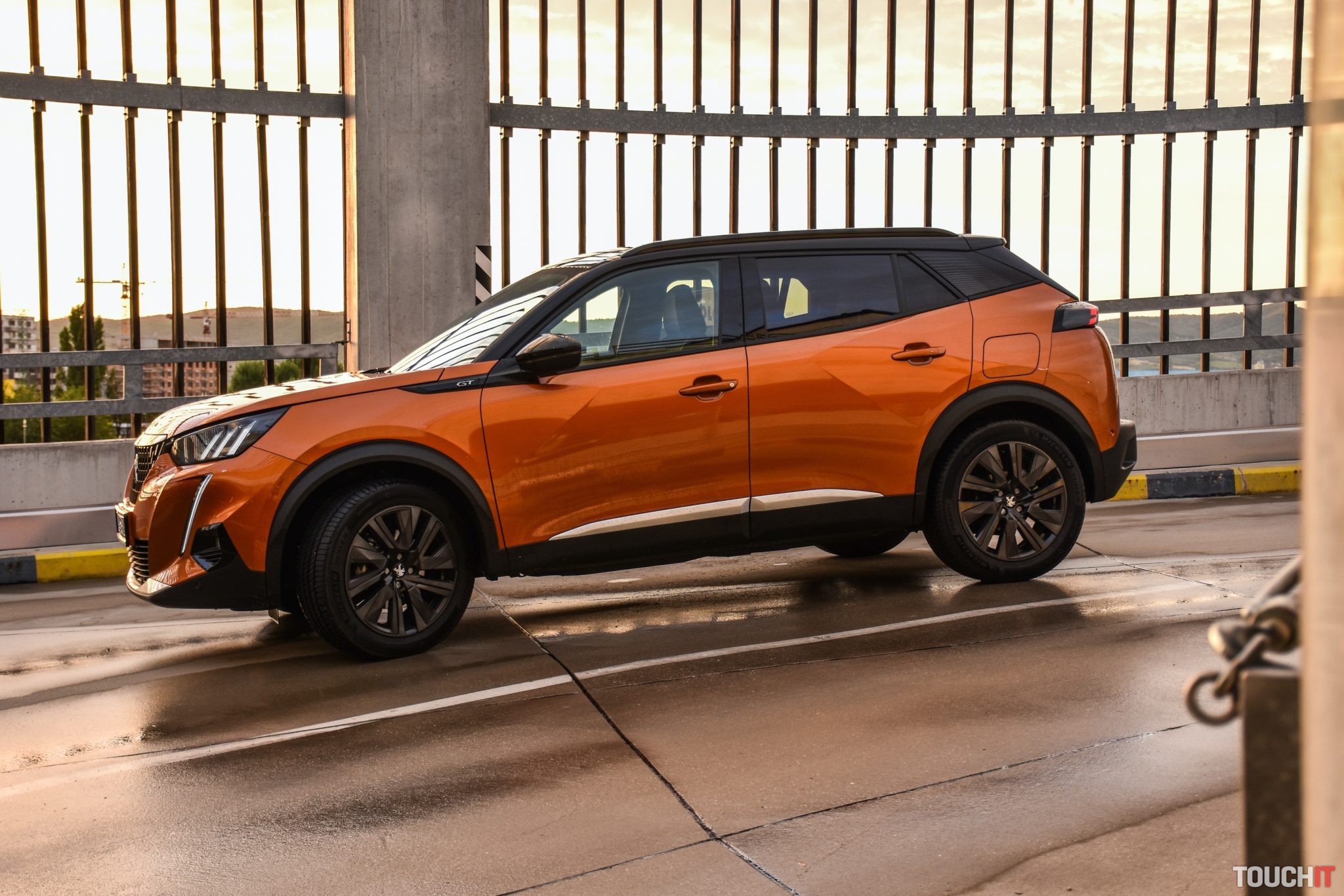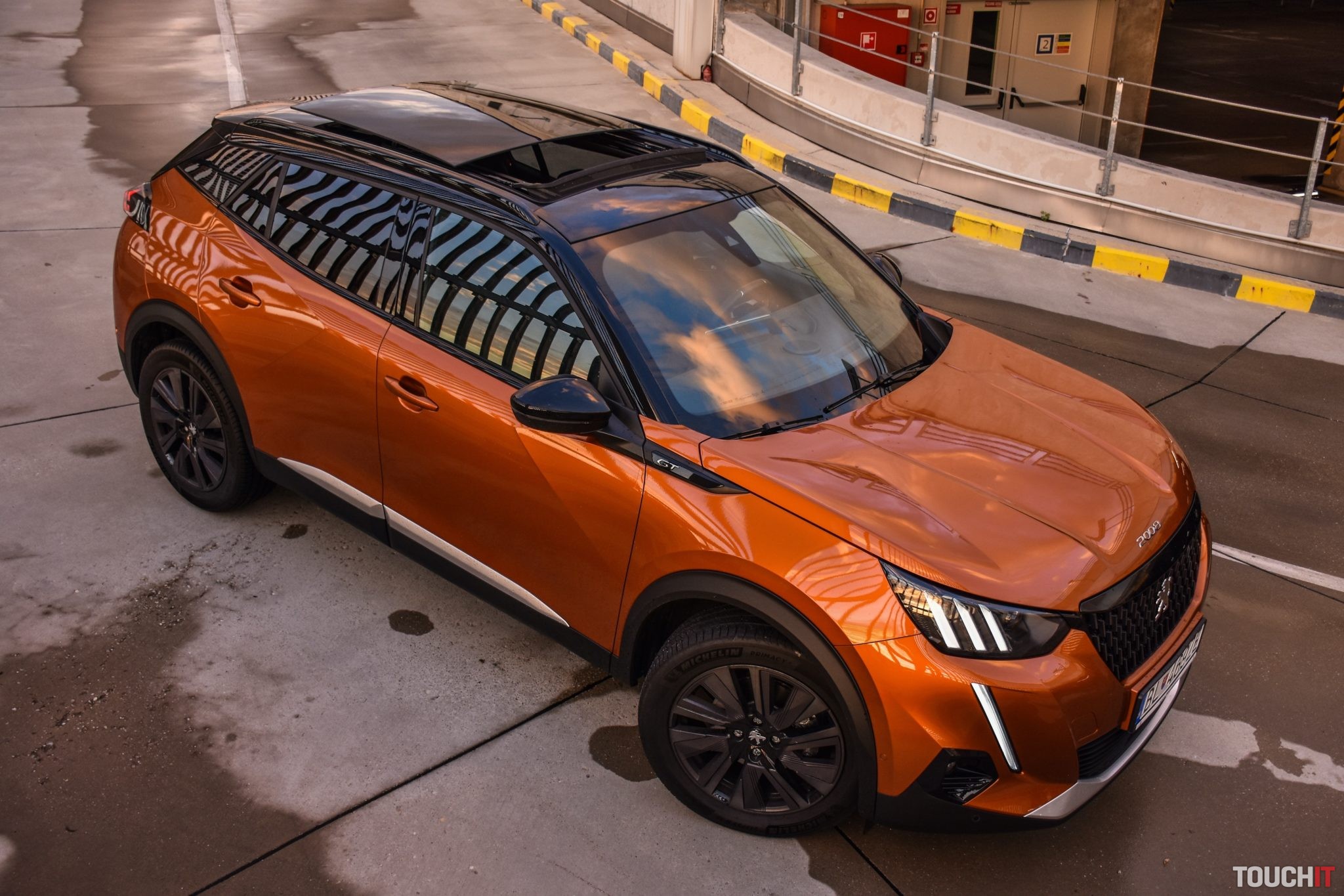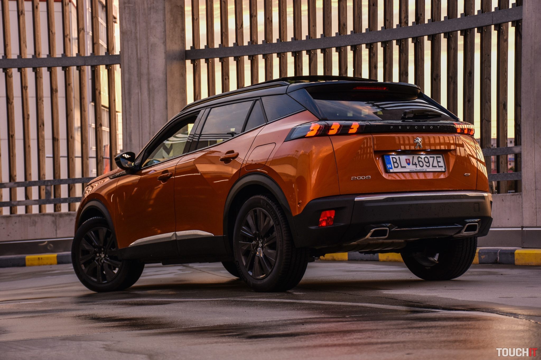 Vynechať nemôžem ani farebnú kombináciu, ktorá podčiarkuje hravosť tohoto modelu. Krásne oranžové (Fusion) lakovanie dopĺňajú matné čierne ochranné lemy potiahnuté okolo celej karosérie + je táto kombinácia doplnená o matné strieborné lišty a celok je zavŕšený čiernou panoramatickou strechou s možnosťou otvorenia. Na záver exteriérovej exkurzie dodám, že tmavé 18“ disky tiež potešia (Pneumatiky – Michelin Primacy 215/55/R18). Oh áno, chýbať nesmie ani označenie verzie GT, ktoré nájdete na viacerých miestach karosérie. Viac ako ďalších 2000 písmen vám napovedia fotky tejto verzie, ktorú vám odporúčam – teda ak máte záujem o malé mestské SUV v podaní Peugeotu.