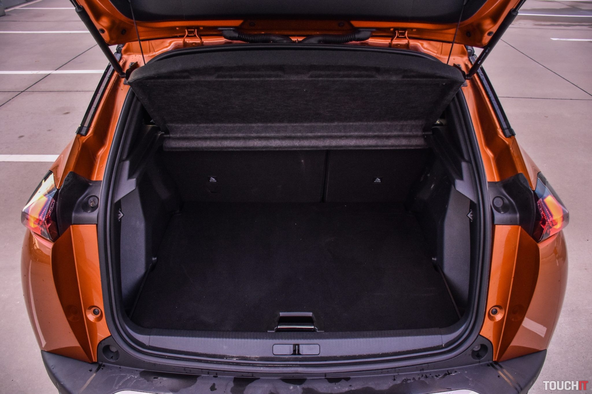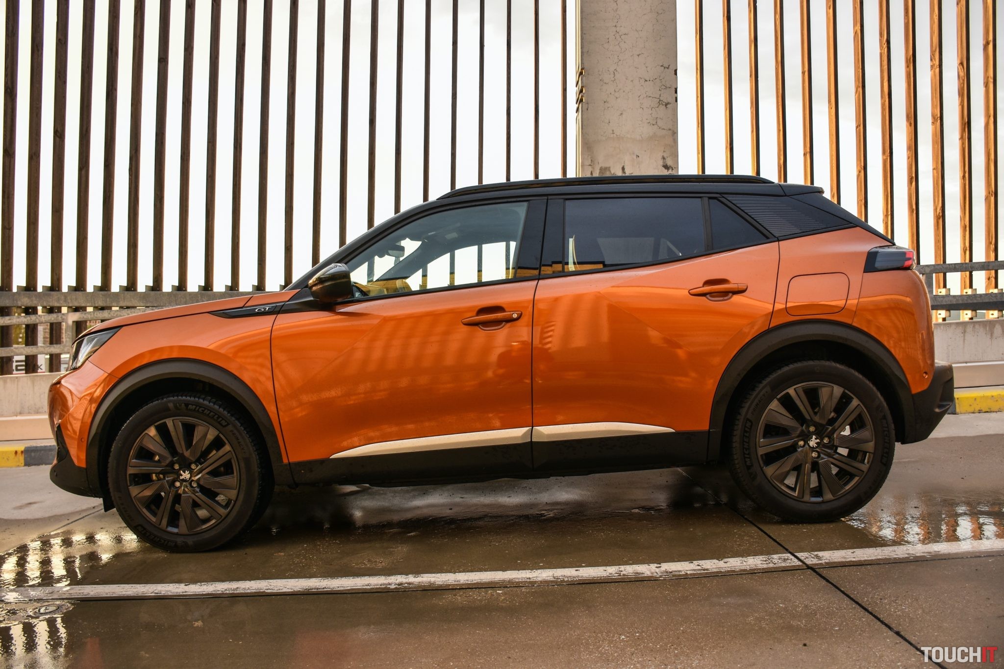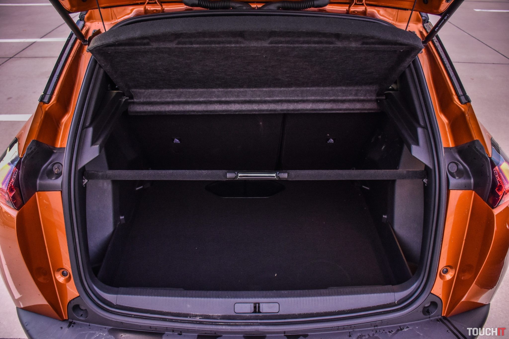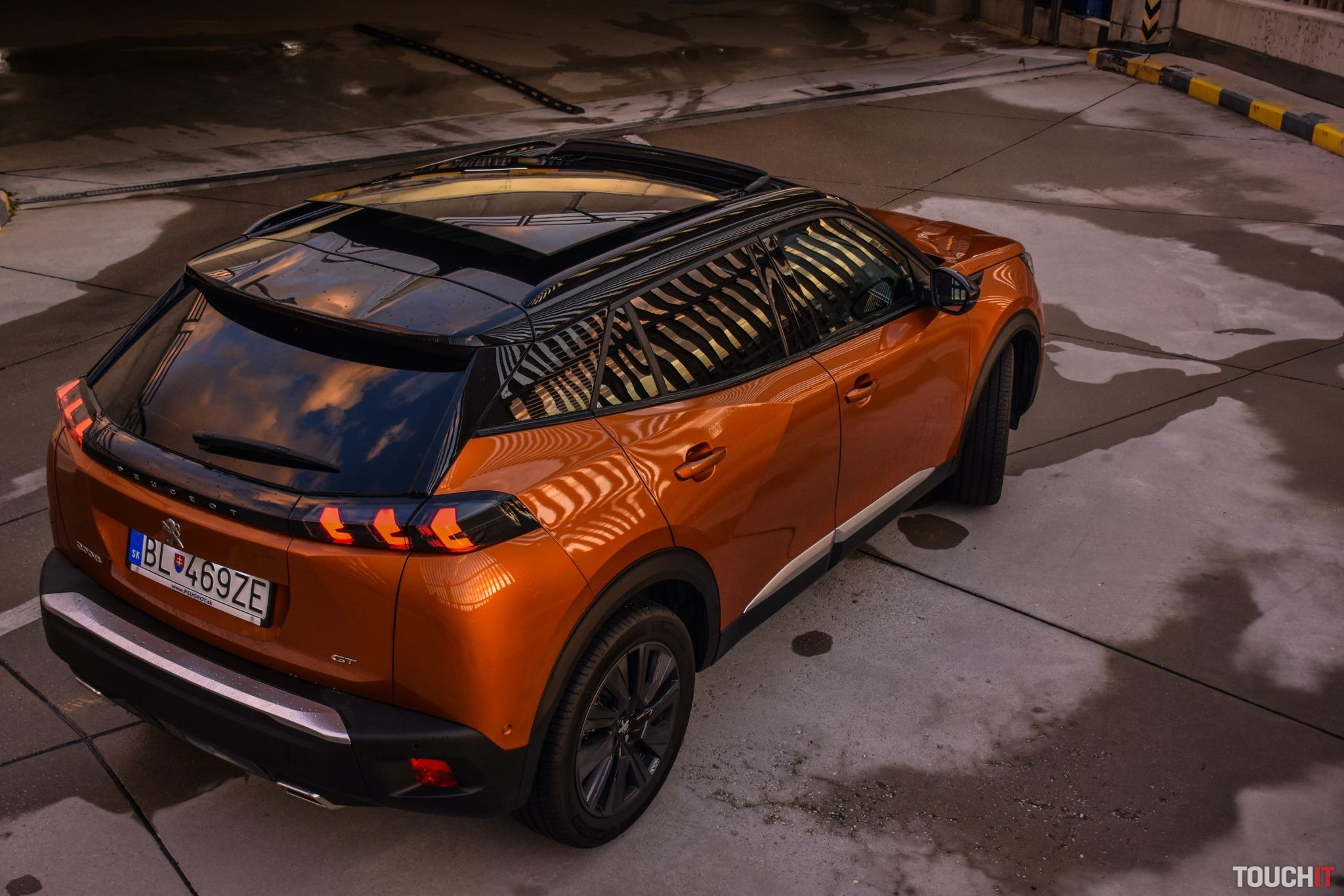 Vynechať nemôžem ani farebnú kombináciu, ktorá podčiarkuje hravosť tohoto modelu. Krásne oranžové (Fusion) lakovanie dopĺňajú matné čierne ochranné lemy potiahnuté okolo celej karosérie + je táto kombinácia doplnená o matné strieborné lišty a celok je zavŕšený čiernou panoramatickou strechou s možnosťou otvorenia. Na záver exteriérovej exkurzie dodám, že tmavé 18“ disky tiež potešia (Pneumatiky – Michelin Primacy 215/55/R18). Oh áno, chýbať nesmie ani označenie verzie GT, ktoré nájdete na viacerých miestach karosérie. Viac ako ďalších 2000 písmen vám napovedia fotky tejto verzie, ktorú vám odporúčam – teda ak máte záujem o malé mestské SUV v podaní Peugeotu.