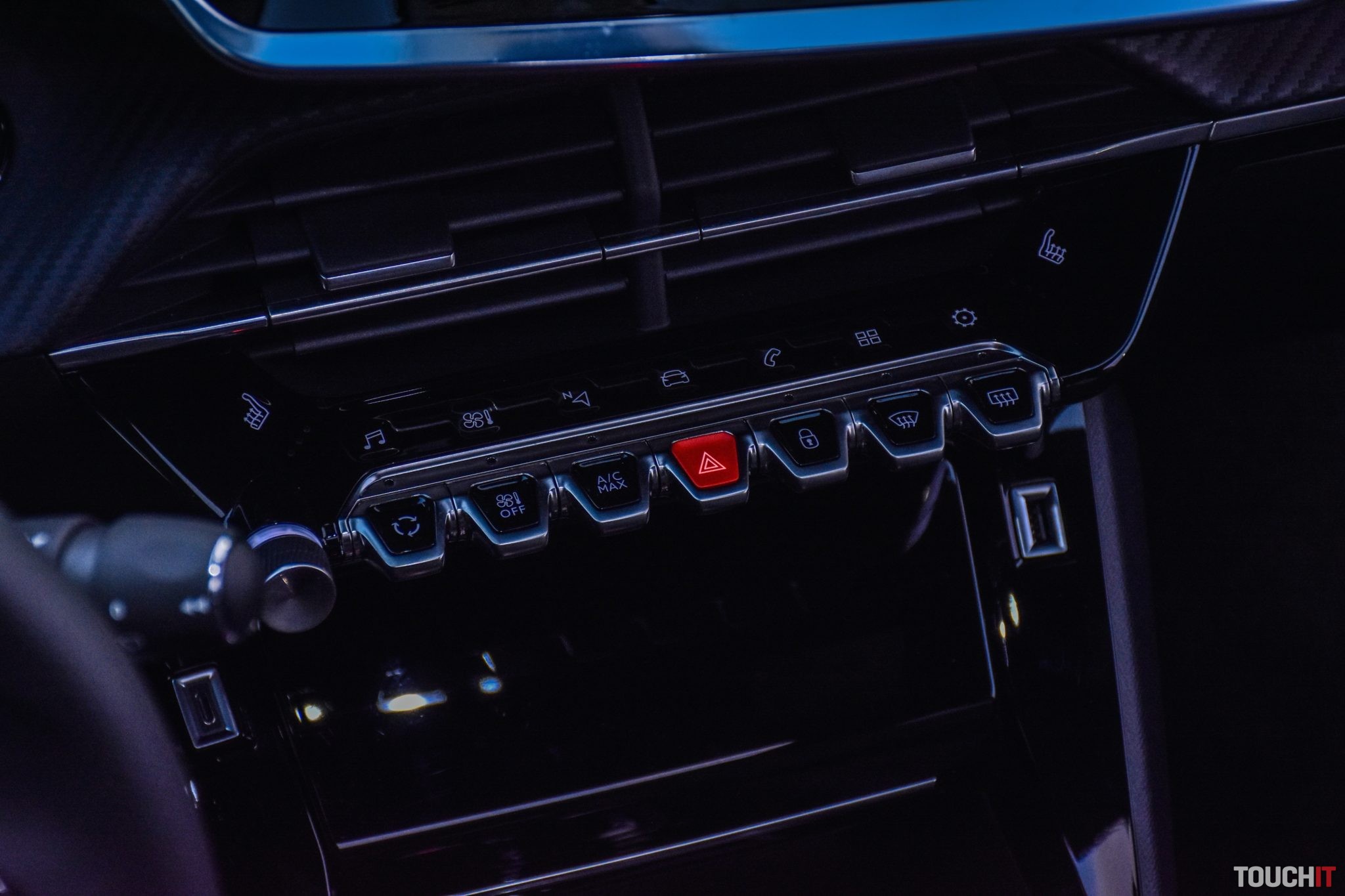 Ak sa pozriete na interiér z „vtáčej“ perspektívy, tak mu jeho jedinečnosť nemožno odoprieť. Veľmi zaujímavá zostava, ktorá ponúka aj praktické odkladacie prvky, ako napr. špeciálnu priehradku s bezdrôtovým nabíjaním pre smartfóny, ktorej výklopné „dvierka“ slúžia aj ako stojan pre telefón – praktické!