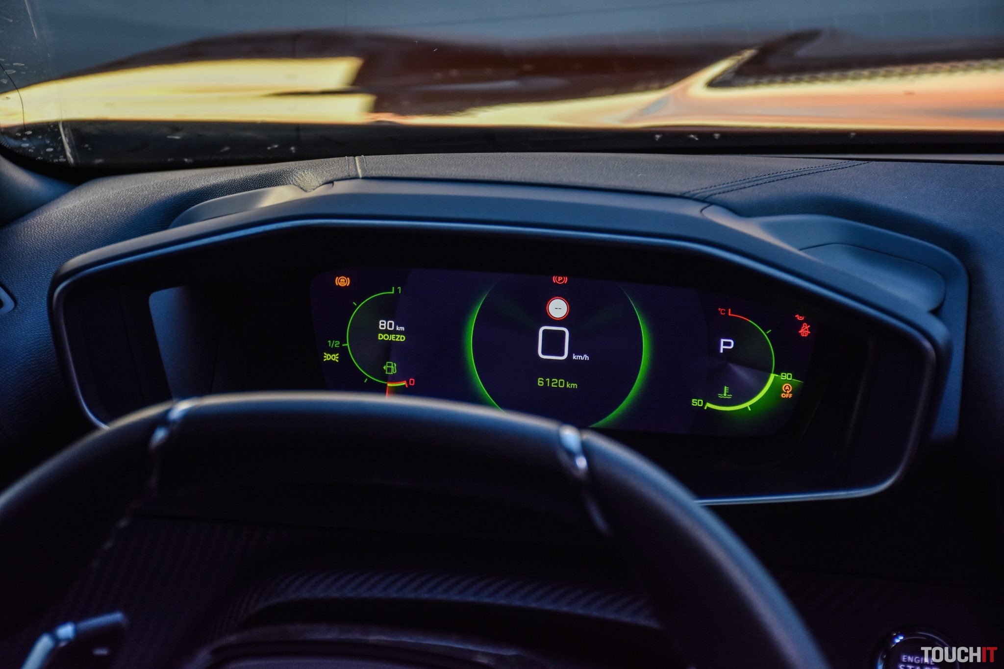 Nie je to moja šálka kávy, ale problém s ním nemám, akurát nevidím všetky údaje na veľkom plne digitálnom prístrojom panely s možnosťou zmeny grafiky a zobrazených informácií, lebo mi trošku zavadzia skosený kožený volant. Ten sa dobre drží, má zaujímavý tvar, no jeho nastavenie nie je tak rozsiahle, aby som ho dostal do ideálnej pozície.