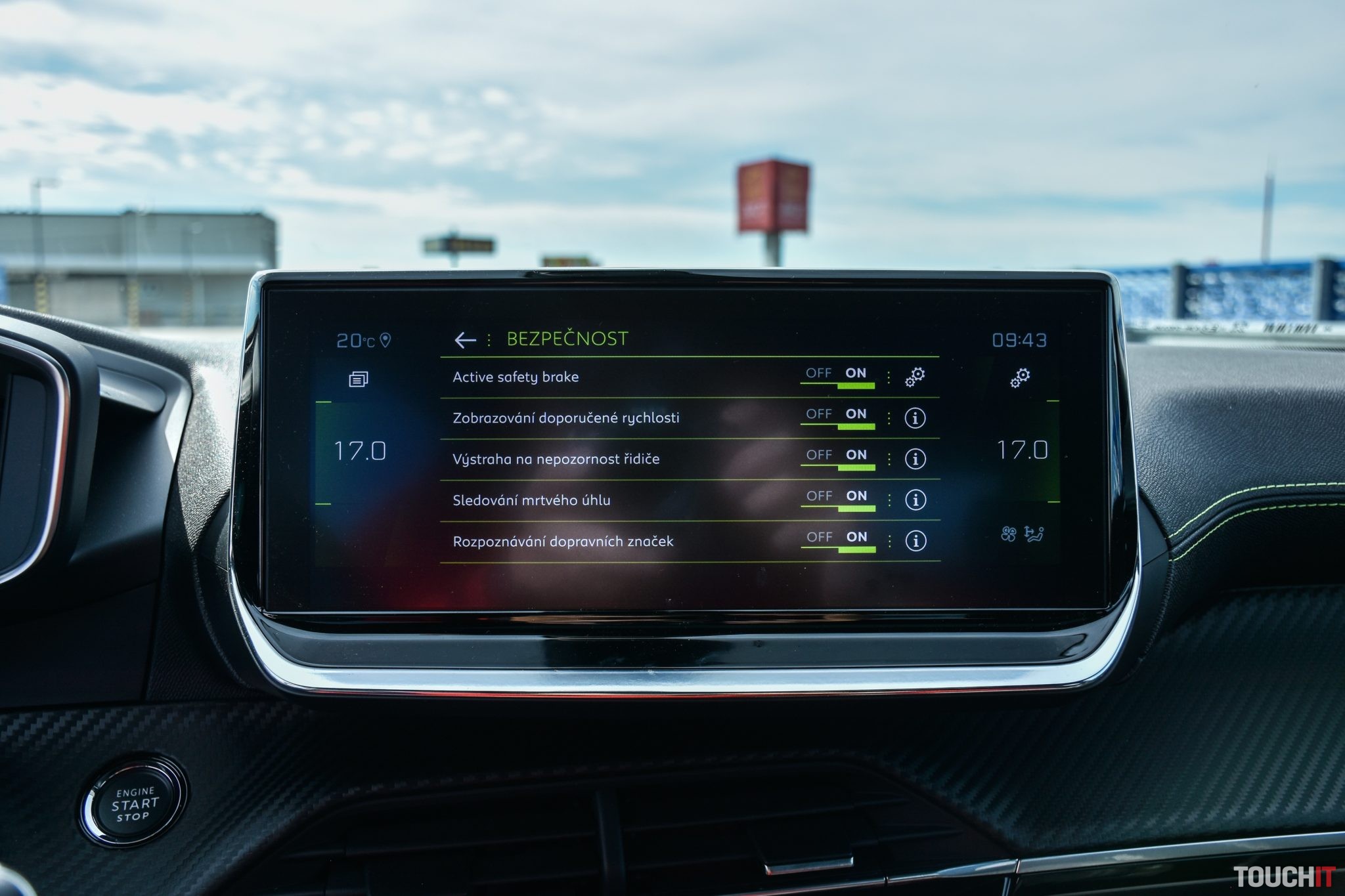 Nad ňou a ďalšími ovládacími prvkami je v strede palubnej dosky osadený veľký 10“ dotykový LCD displej s fajn grafikou a špecifickým francúzskym systémom, ktorý nepatrí medzi tie najintuitívnejšie, ale dá sa s ním pracovať, resp. si naňho časom zvyknete – to nie je problém, iba poznatok s ohľadom na konkurenciu. V rámci tohoto displeja/OS si nastavujete všetky systémy vozidla, asistentov a pochopiteľne je to aj multimediálne centrum, ktorému sekunduje nadpriemerný audio systém Focal. Oceňujem podporu Apple Car Play / Android Auto, ako aj plnú konektivitu (USB-A, USB-C, Bluetooth, Wi-Fi hot-spot a pod.) a zabudnúť nesmiem ani na natívnu navigáciu s doživotnou aktualizáciou zdarma.