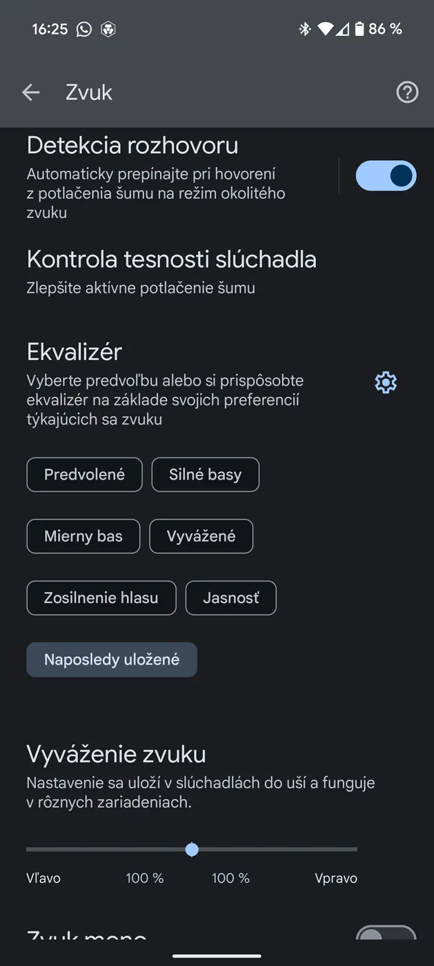 K presnému doladeniu zvuku je možné použiť aj prednastavené presety priamo v aplikácii Pixel Buds, kde sa samozrejme nachádza aj grafický ekvalizér. Počas prvých dní testovania som slúchadlá skúšal s Galaxy S23 Ultra, neskôr som prešiel na Pixel 9 Pro XL. Hoci na Galaxy som mal zvuk nastavený podľa svojich predstáv, a bol som spokojný, tak po prechode na Pixel sa dostal zvuk na novú úroveň. Bol plnší a mal celkovo väčšiu šťavu.