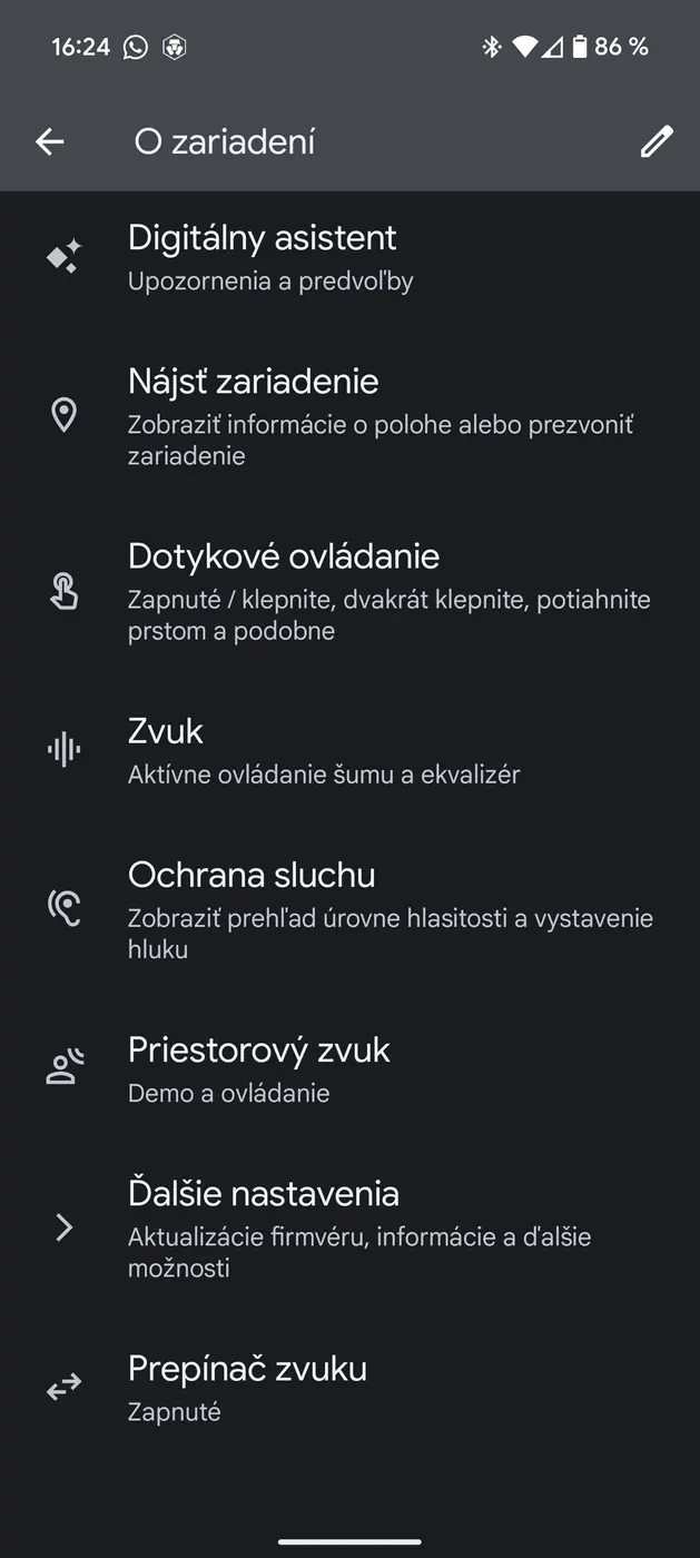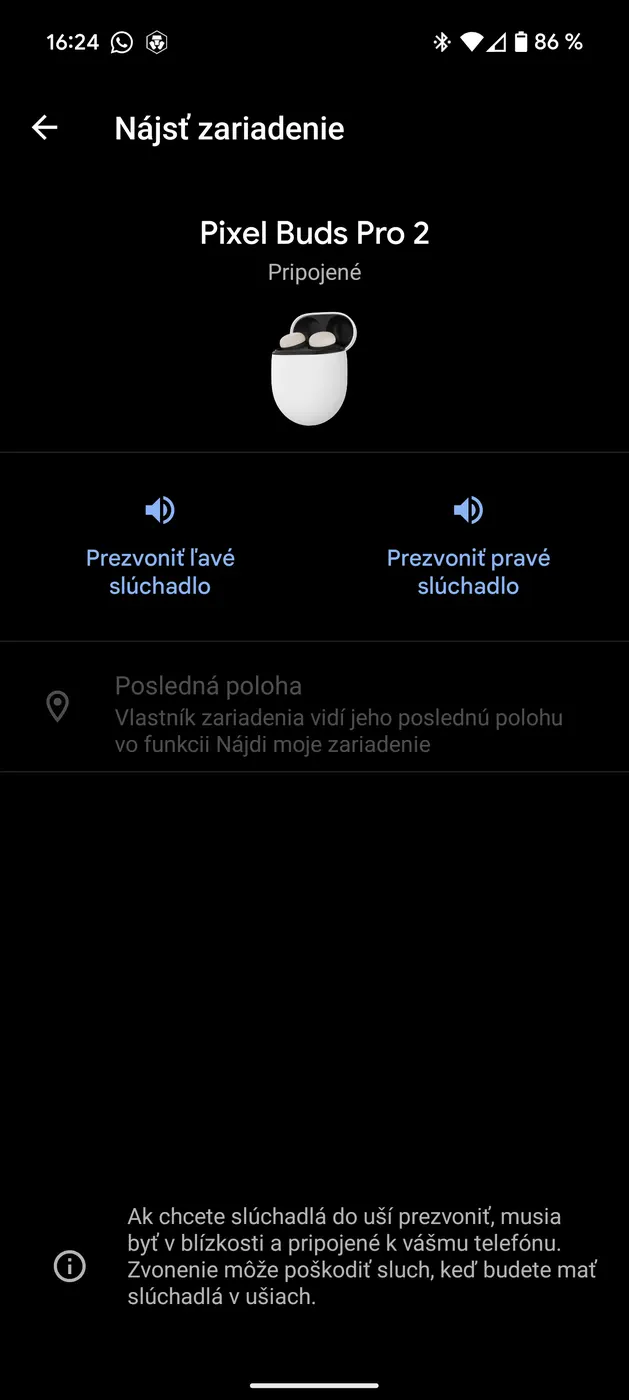 V rámci mobilnej aplikácie Pixel Buds mi nič nechýbalo. Vo vrchnej časti sa nachádzajú informácie o stave batérie v puzdre a slúchadlách, nižšie o režimoch ANC a ďalších nastaveniach, ako je napríklad detekcia používania. Za užitočné považujem možnosť premapovania dotykového ovládania a ochranu sluchu, ale aj funkciu Nájsť zariadenie.