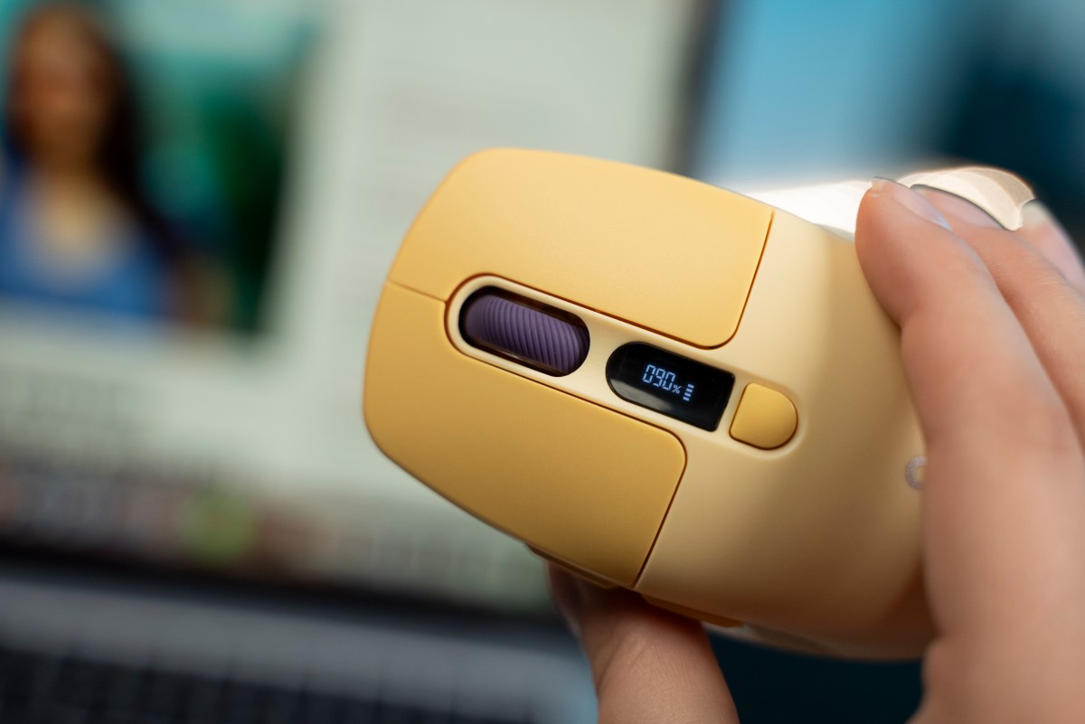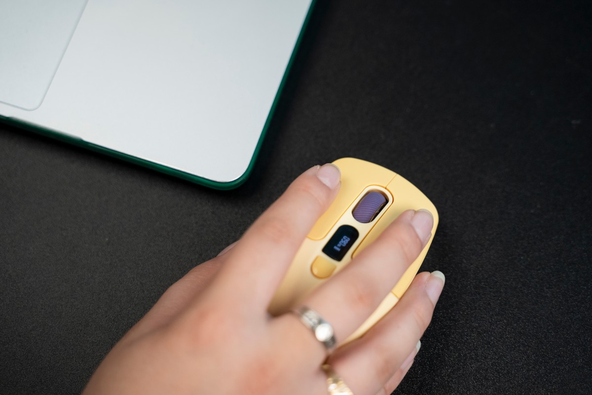 Myš disponuje šiestimi tlačidlami a menším displejom, ktorý informuje o stave nabitia batérie alebo aktuálnom nastavení DPI. DPI sa dá prepínať medzi 800 a 2 400 a viete si tak prispôsobiť správanie na bežnú prácu aj hranie. Kapacita batérie myši je 400 mAh a nabíja sa prostredníctvom konektora USB-C. Predáva sa v štyroch atraktívnych farbách, v zelenej, ružovej, žltej a fialovej.
