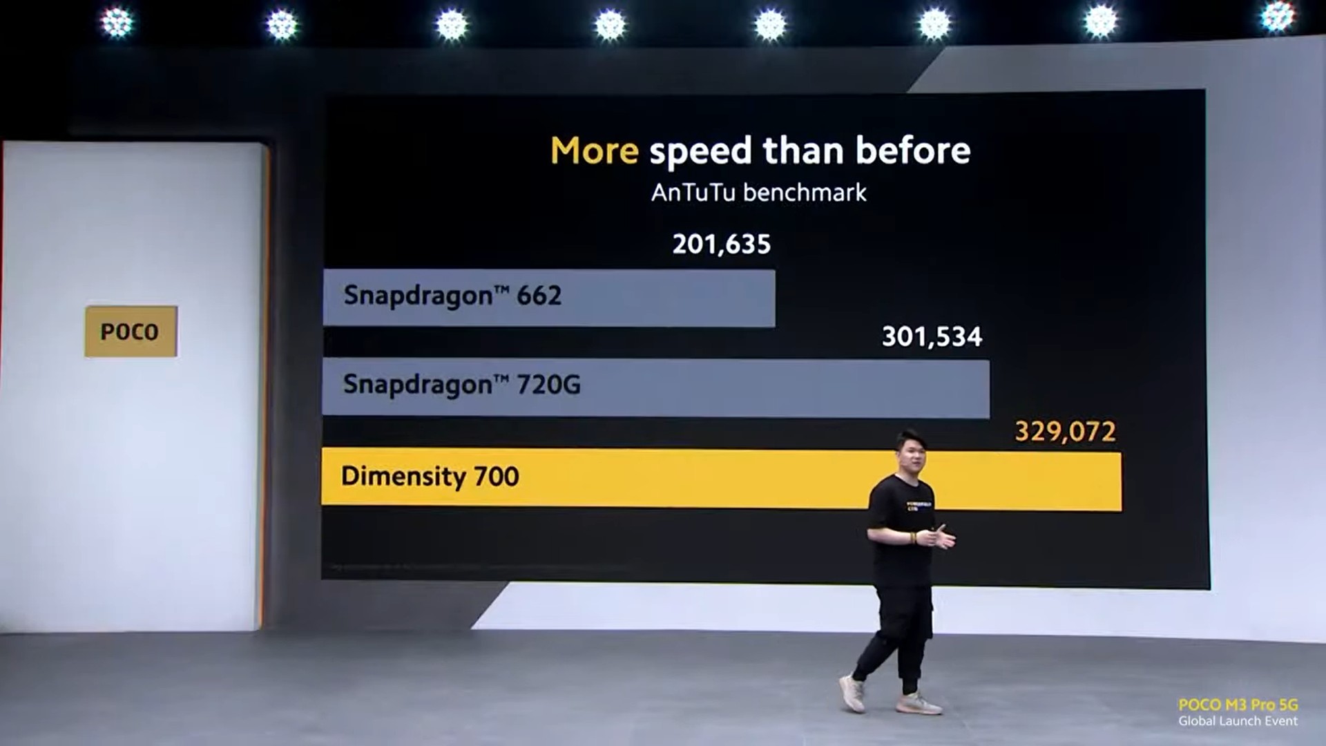 5G smartfóny sú spravidla vždy drahšie ako porovnateľné modely bez 5G čipu. Výrobca preto nechce robiť kompromisy vo výbave u ostatných parametrov, aby sa mu podarilo udržať priaznivú cenu za 5G verziu. Použil procesor MediaTek Dimensity 700, ktorý je čoraz častejšie vidieť aj u ostatných výrobcov smartfónov, napríklad Realme. Základom je úložisko kompatibilné so štandardom UFS 2.2. Telefón má 6,5“ displej s pokrytím 91 % prednej strany a rozlíšením Full HD+. 90 Hz obnovovacia frekvencia s funkciou DynamicSwitch. Pri streamovaní videa sa použije 60 Hz frekvencia, pri čítaní statického obsahu 50 Hz a pri filmoch 30 Hz. Avšak, ak zapnete hru a hra podporuje vyššie snímkovanie, vychutnáte si ju na 90 Hz. Rovnako tak aj keď bude rolovať nejaký obsah. Štandardom sa stala 5000 mAh s podporou 18 W nabíjania, pričom v balení máte nabíjačku s výkonom 22,5 W. Menej štandardným údajom je, že pri tejto batérii váži iba 190 gramov. Zo základnej výbavy nechýba NFC, audio konektor a infračervený port. Cenovka mala dopad na fotoaparát a tak tu máte iba hlavný 48 Mpx a makro objektív. Je tu aj snímač hĺbky, no ten berieme do počtu. Počas prezentácie spomenul výrobca možnosť robiť časozberné videá. Predpokladáme ale že, vo výsledku dostanete menej fotografických režimov ako pri drahších smartfónoch. Poďme na ceny, v čase predstavenia boli ohlásené dve pamäťové varianty a to 4 / 64 GB za 179 eur a 6 / 128 GB za 199 eur. Zdroj: POCO Prečítajte si aj:Poco F3 Pro: Cena a výbava týchto noviniek vás dostane