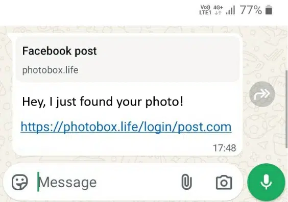 Bezpečnosť obchádzajú tak, že používateľovi pošlú link, ktorý otvorí stránku ako na prihlásenie do Facebooku. Chcete si pozrieť obrázky ale vyskočí stránka, kde sa treba prihlásiť na Facebook cez telefónne číslo. Na pohľad nič čudné a používateľ teda vyplní svoje údaje, prípadne sám potvrdí dvojfaktorovú autentifikáciu.