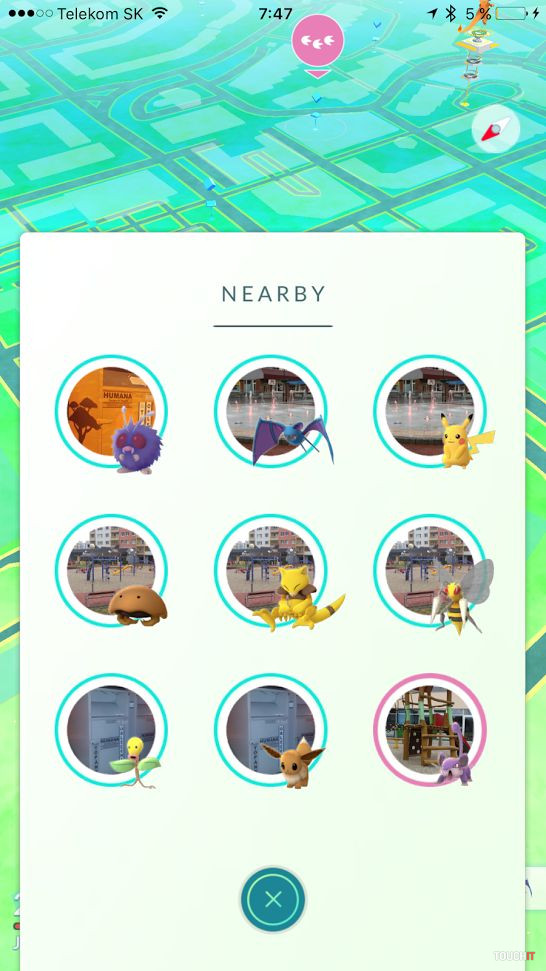 Ako získam ďalších Pokémonov? Pokémoni sa nachádzajú vo svete okolo vás. Objavujú sa náhodne, takže spočiatku odporúčame, aby ste sa iba prechádzali a mali zapnutú aplikáciu. Telefón zavibruje, keď sa objaví príšerka – následne ju môžete vidieť aj na displeji a ťapnutím na ňu spustíte minihru chytania Pokémona. Umiestnenie Pokémonov vám ukáže aj vynovený Nearby systém. Jeho výhodou je, že zobrazuje Pokémonov aj v širšom okolí a po ťuknutí na Pokéstop zobrazí jeho presnú polohu, takže viete, kam musíte kráčať. Nevýhodou je, že systém neukazuje všetky príšerky vo vašom okolí. Upozorní vás na Pokémonov pri Pokéstopoch, avšak nezobrazuje tých, ktorí sú “vo voľnej prírode“. Môže sa teda stať, že na Nearby obrazovke neuvidíte Pokémona, ktorého chcete chytiť kvôli tomu, že sa nenachádza v blízkom okolí Pokéstopu.