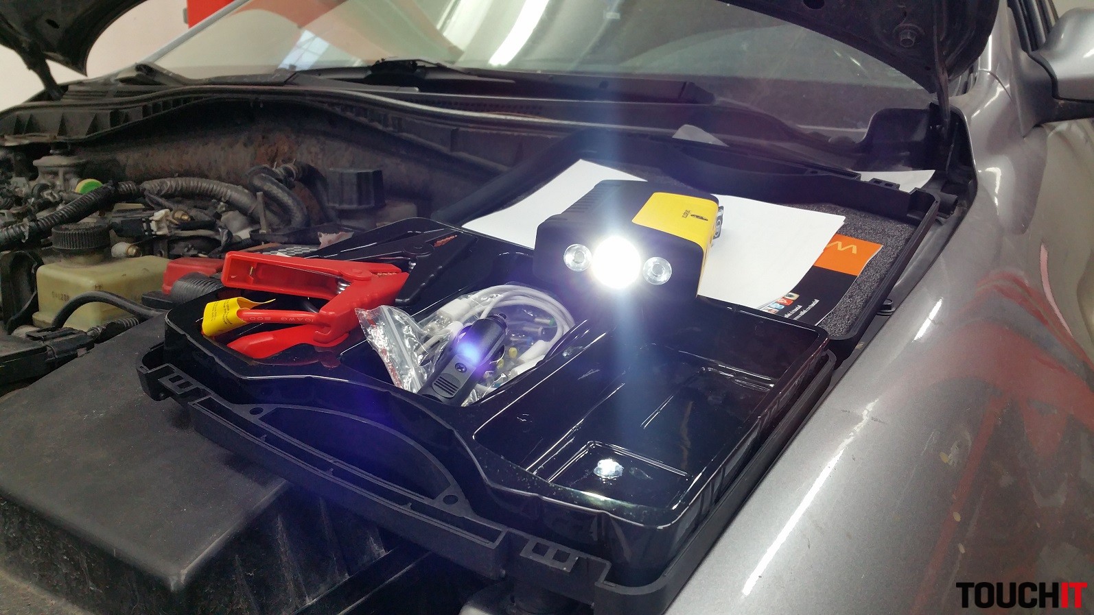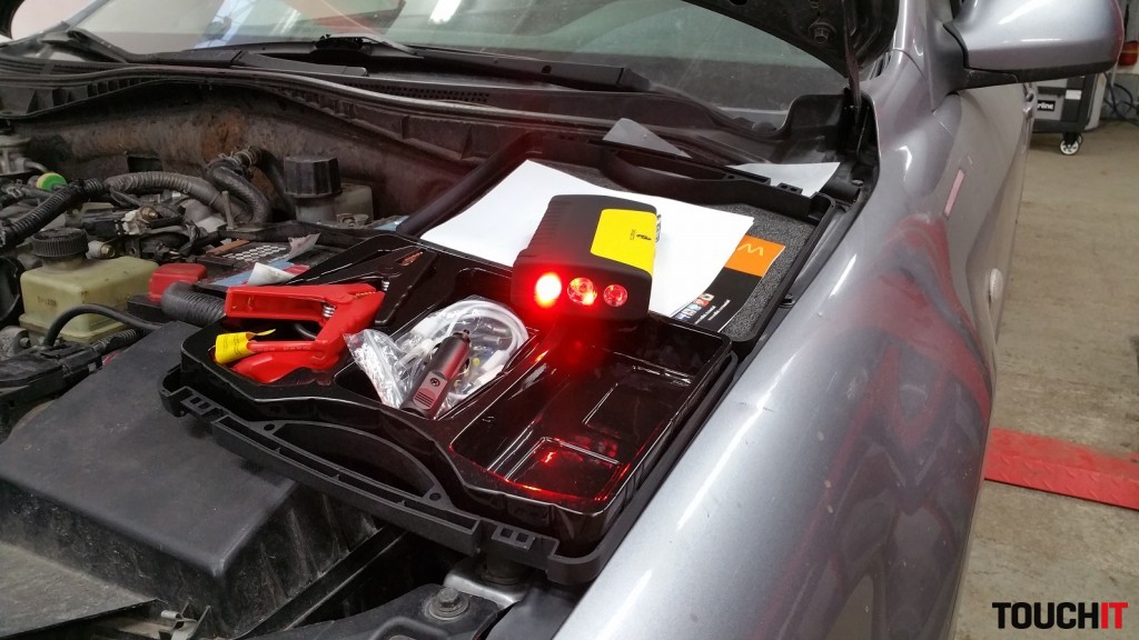 Toto je najzaujímavejšia funkcia testovanej powerbanky a zároveň veľmi užitočná. Situácia, kedy sa vám nedarí naštartovať auto z dôvodu slabej batérie, nie je vôbec príjemná. No ak máte po ruke power-banku s funkciou Jump-Start, ktorá dokáže automobil núdzovo naštartovať, je po probléme. Samozrejme, ani toto nie je zázračná škatuľka, ktorá naštartuje vašu V8. Všetko má svoje hranice a inak to nebude ani v tomto prípade. Maximálny objem motora na núdzové štartovanie je odporúčaný do 3000 cm3. Maximálny prúd power-banky je 600A, avšak štartovací prúd je 300 A.
