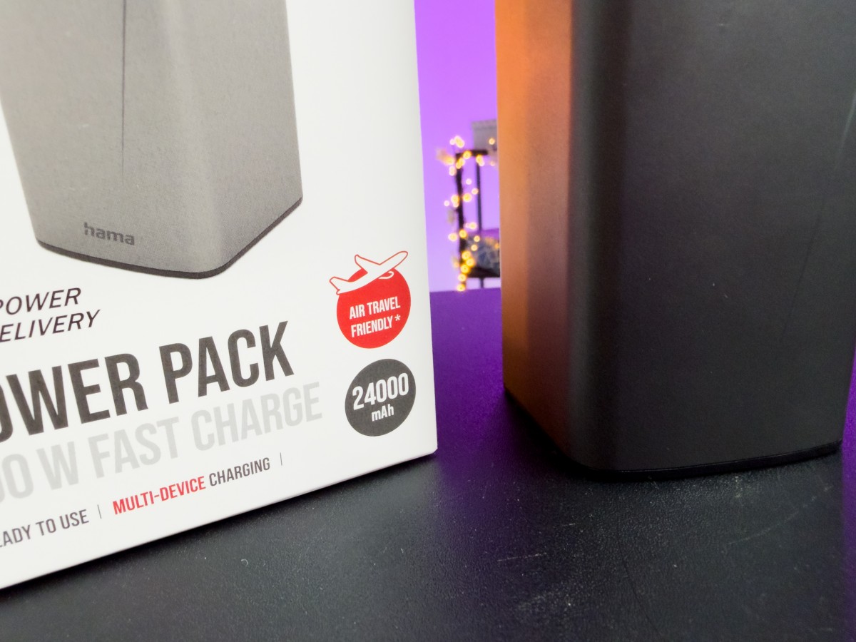 Celková kapacita powerbanky je 24 000 mAh, spĺňa však aj podmienky pre leteckú prepravu*. Bez problémov teda môžete túto powerbanku Hama vziať so sebou aj na výlet do iných krajín a vložiť si ju do vašej príručnej batožiny. Je to tak skvelý spoločník, s ktorým precestujete celý svet. Pre komfortnejšie nabíjanie na displeji zobrazuje aktuálne informácie o stave nabitia, no aj informácie o výkone nabíjania zariadenia. V balení powerbanky taktiež nájdete kábel USB-C na USB-C vhodný pre výkon 240 W, takže ho stačí pripojiť a môžete nabíjať.