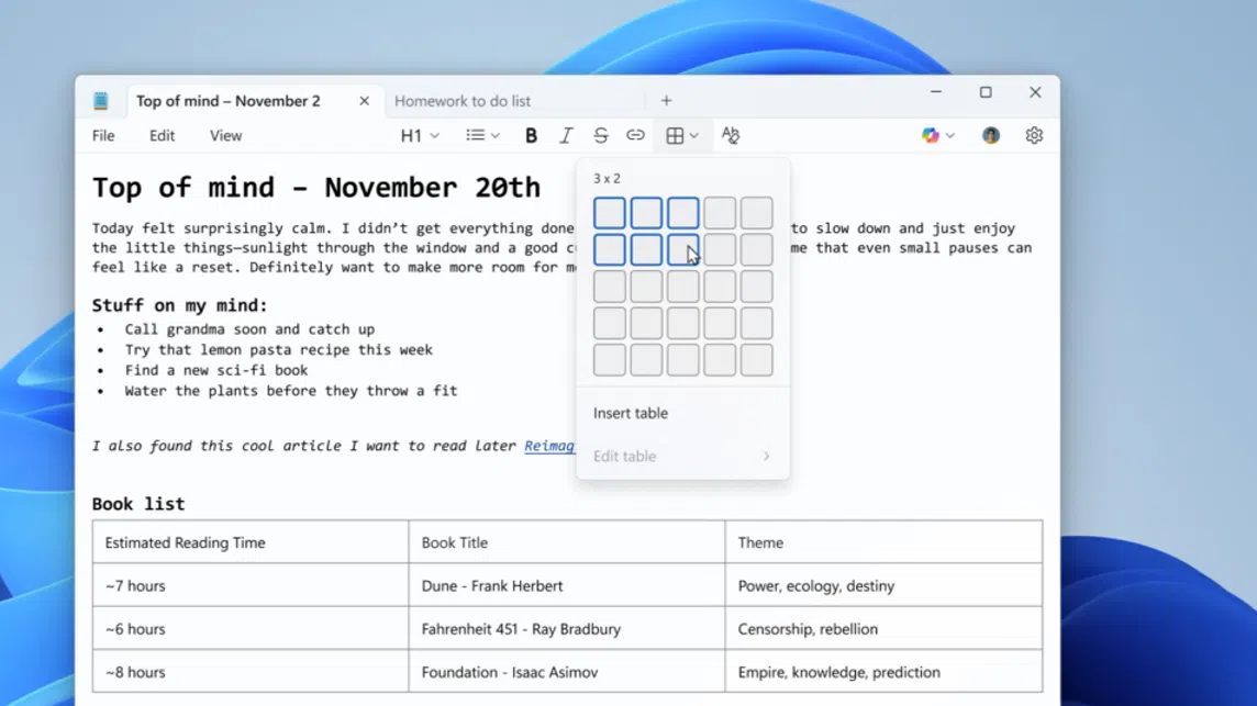 Vloženú tabuľku budete môcť upravovať a teda pridávať alebo odstraňovať riadky a stĺpce. Poznámkový blok sa v posledných rokoch začal výrazne meniť a rozvíjať. Funkcie sú praktické a Microsoftu treba pripísať kredit za to, akou cestou sa vydal.