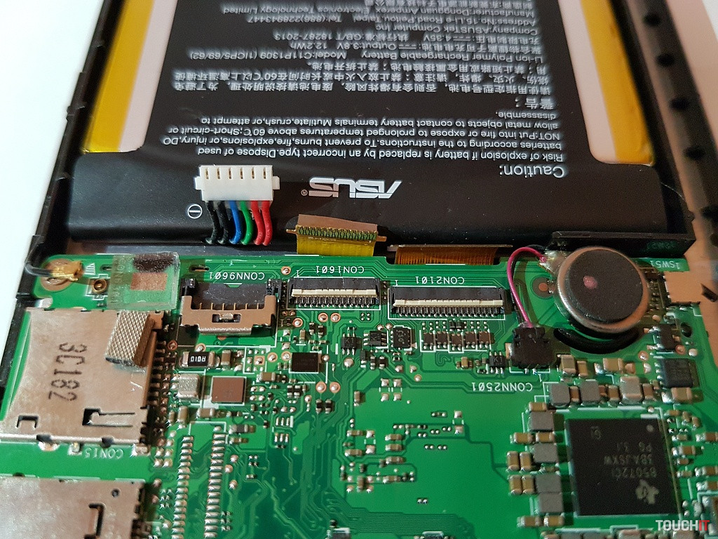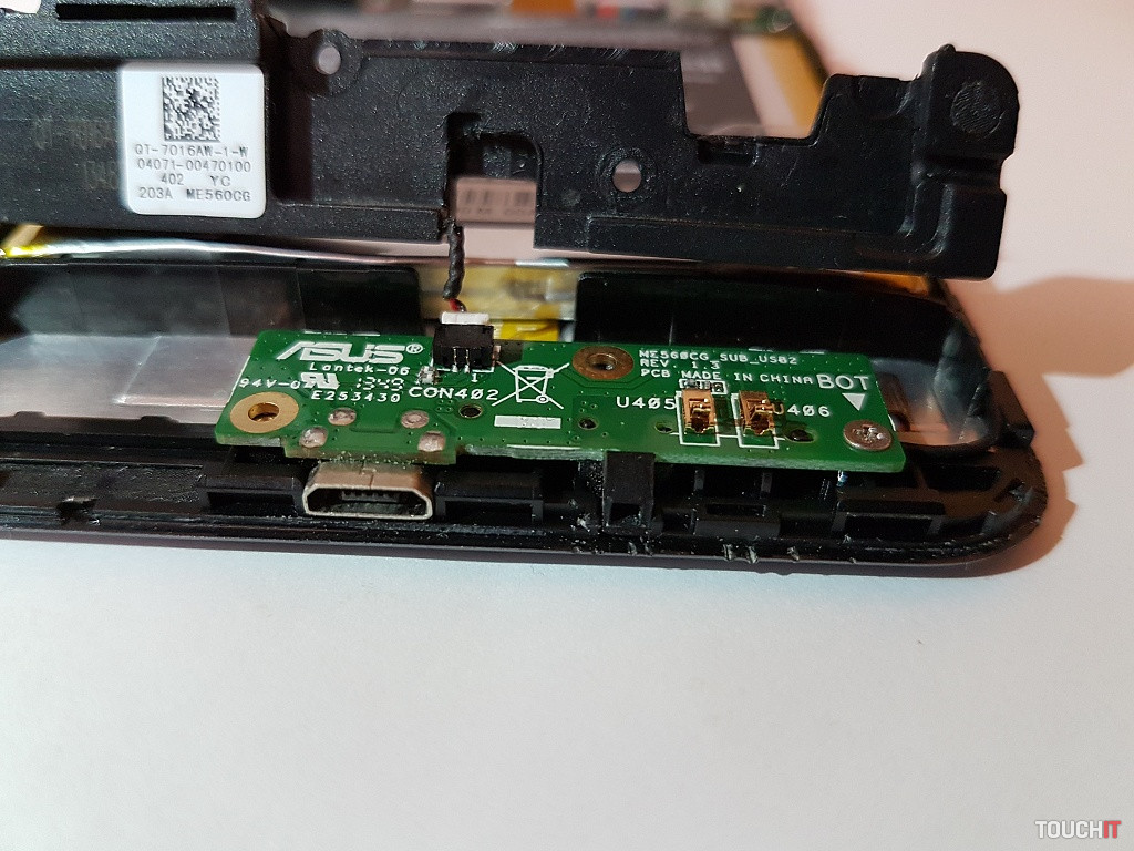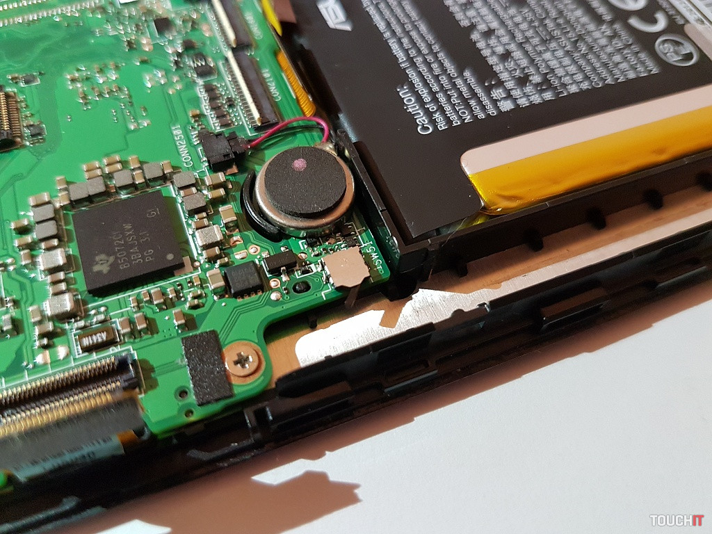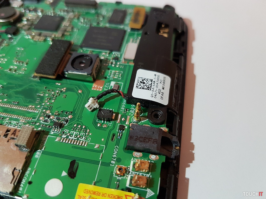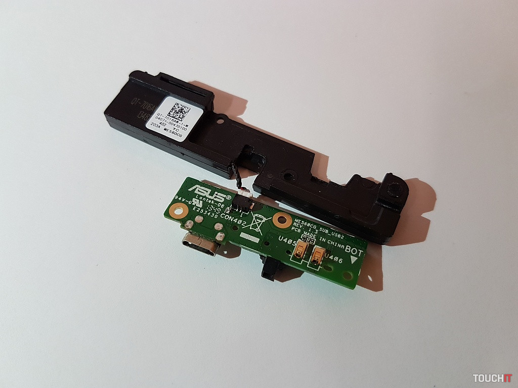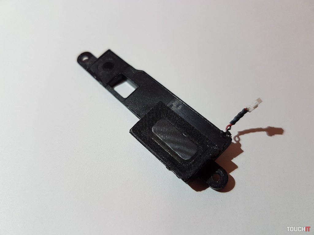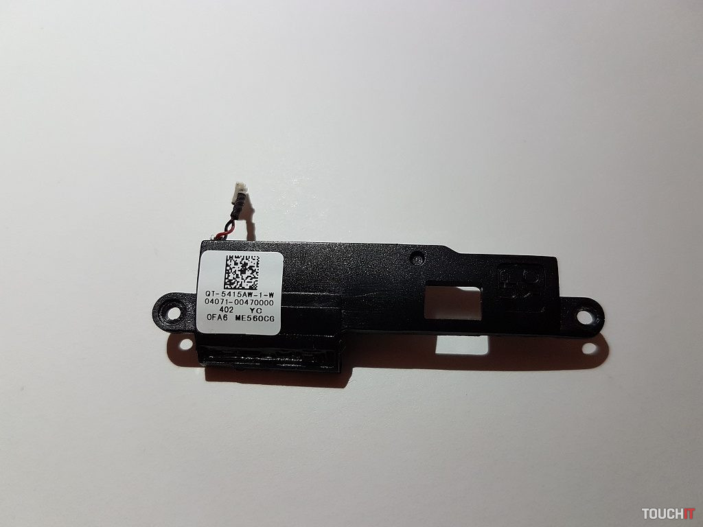 Pokračujeme oddelením komponentov a flex káblov od základnej dosky zariadenia. Prvým je slúchadlo, ktoré má zároveň funkciu reproduktora. Fonepad Note 6 je stereo zariadenie s technológiou – SonicMaster.