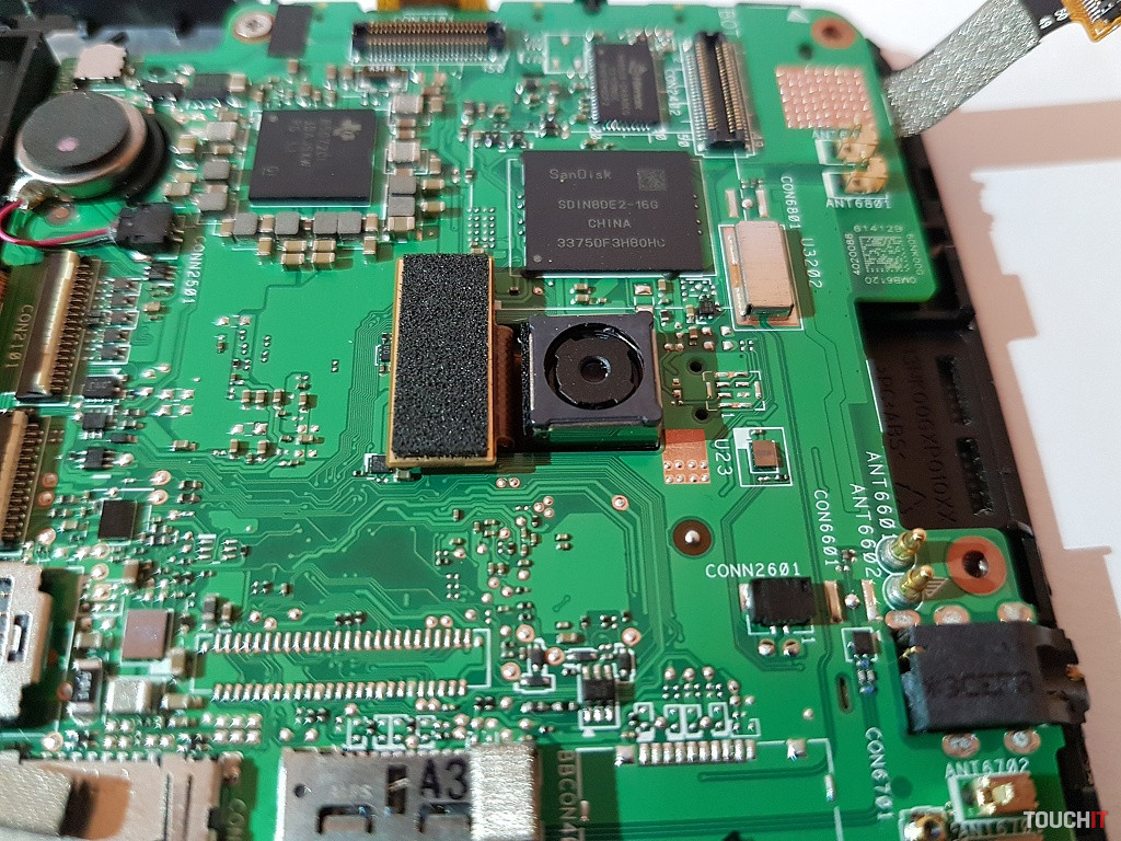 Na základnej doske je umiestnená aj predná kamera s rozlíšením 1,2 Mpx, ktorá dokáže nahrávať 720p video.