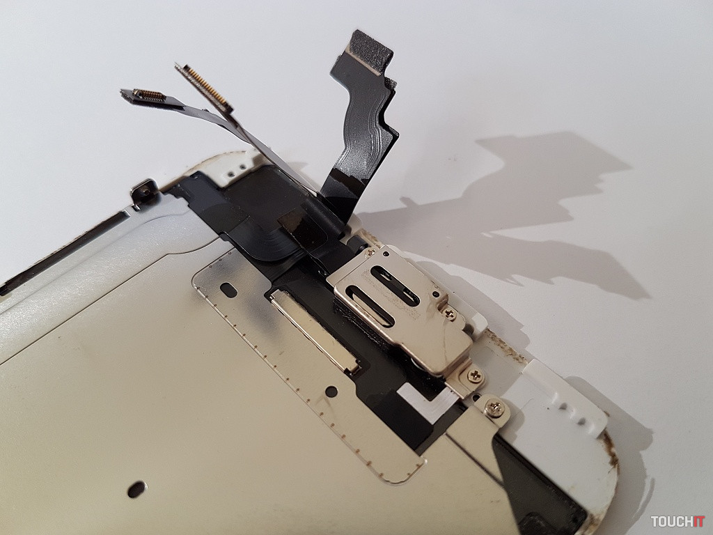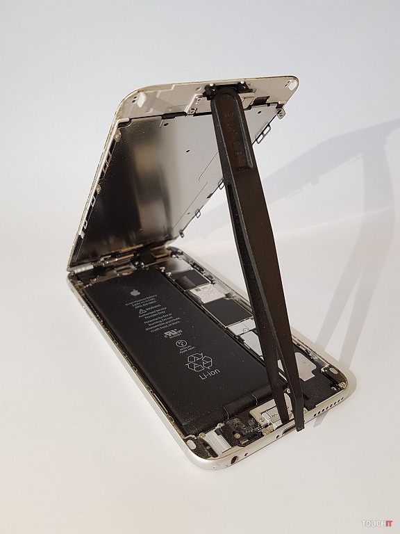 Poďme dnu Ako už isto viete (z našich predchádzajúcich redakčných „pitiev“), aj tento iPhone sa otvára cez displej. Potrebné je nato odskrutkovať dve „torx“ skrutky v spodnej časti. A to platí pre všetky servisné úkony, inou cestou sa dnu nedostanete, jedine, že by, veď viete – uhľová brúska :). Pokračujeme odobratím krycieho pliešku konektorov, ktoré spájajú predný LCD panel so základňou, vlastne celým „srdcom“ zariadenia. Na obrázku nižšie vidieť konektory prepojenia predného LCD panelu so základňou. Od vrchu, najširší + jeden pod ním sú konektory displeja a dotykovej plochy. Pod ním, tretí, je konektor vrchného flex kábla, ktorý je uchytený na ráme LCD panelu. Nachádza sa na ňom predná kamera, senzor proximity, svetelný senzor a reproduktor. A posledný, na boku, je konektor TouchID, teda tlačidla „domov“. Dve hlavné, samostatné časti zariadenia. LCD panel + (základňa) zadný kovový kryt s komponentami a súčiastkami. Na ľavom obrázku vidíme flex kábel LCD panelu so súčiastkami uvedenými vyššie, ten je krytý kovovým plieškom. Pravý obrázok ukazuje spodnú časť LCD panelu s TouchID, ktoré je taktiež zabezpečené kovovým plieškom. TouchID má flex kábel vedený po bezpečnostnom plechu displeja, čo je výborné riešenie. Bezpečnostný kryt (plech) LCD displeja s flex káblom TouchID. Krycí plech displeja je uchytený o rám predného panelu šiestimi skrutkami. TouchID – tlačidlo „domov“ (rýchly snímač odtlačkov prstov). Flex kábel, ktorý má umiestnenie vo vrchnej časti rámu LCD displeja. Nachádza sa na ňom predná kamera – 1,2 Mpx (HD video, HDR), senzor proximity, svetelný senzor a reproduktor. Kovový rám zariadenia Apple iPhone 6 Plus so súčiastkami – žltá: fotoaparát + LED dióda / oranžová: Wi-Fi anténa / šedá: konektory predného LCD panelu / červená: slot pre nano SIM kartu / šedá (malá): kovový kryt konektora batérie a dock-flexu / modrá: vibrátor / zelená: reproduktor / fialová: lightning konektor / ružová: mikrofón / žltá: 3,5 mm audio konektor. V pravej vrchnej časti zariadenia sa nachádza zadná kamera – rozlíšenie 8 Mpix (f/2,2), duálna LED dióda, nahrávanie Full HD videí (1920 x 1080 px – 30 fps). Spomalené zábery – slow motion (240 fps). A nechýba mu ani optická stabilizácia obrazu. A v ľavej vrchnej časti sa nachádza Wi-Fi anténa s plastovým krytom. Slot pre nano SIM kartu so „šuplíkom„. Vyššie je vidieť tlačidlo napájania. Pozrime sa ešte na hardvérové ovládacie prvky z vnútra. Tie sú, ako inak, excelentne spracované. Na ľavom obrázku je dvojité tlačidlo ovládania hlasitosti a nad ním sa nachádza malý prepínač tichého režimu. Na pravom obrázku sa nachádza tlačidlo napájania. Všetky komponenty sú pevne uchytené pod kovovým krytom. Spodná časť zariadenia už tradične patrí dock-flexu, čiže 3,5 mm audio konektoru, Lightning konektoru, mikrofónu, reproduktoru a čiastočne GSM anténe. Následne najväčšiu časť, takmer polovicu vnútra zariadenia tvorí Li-ion batéria. Tá má kapacitu 2915 mAh (3,82 V ÷ 11,1 Wh). A je známe, že ju treba často nabíjať, ale to platí aj pre smartfóny iných výrobcov. A teraz to najhlavnejšie, bez čoho by bola celá táto „schránka“ dielov nefunkčná a bez života. Základná doska, to je súčasť, bez ktorej to jednoducho nejde. V nasledujúcich obrázkoch si ju môžete detailne prezrieť aj s popisom jednotlivých čipov. A kto iný by riadil a usmerňoval tento stroj ako procesor Apple A8 SoC. „Á-osmičkou“ od Apple sme sa dostali ku koncu ďalšej redakčnej pitvy smartfónov, ktorá je pre vás veríme, že zaujímavým obohatením zo sveta technológií. Takto jednoducho a pohodlne môžete nahliadnuť do útrob svojich zariadení a pozrieť sa, čo zaujímavé ukrývajú. V nasledujúcej redakčnej pitve smartfónov sa môžete tešiť na tabletofón – ASUS FonePad Note 6. Aj vy sa tešíte na novinky, ktoré dnes Apple predstaví? My áno, no ešte viac nás poteší, keď budú postupom času na našom stole v takom rozpoložení, ako bolo toto zariadenie :). Zdroj obrázkov základnej dosky: iFixit Viac k téme pozrime sa dnu: Pozrime sa dnu: Apple iPhone 6s Plus Pozrime sa dnu: HTC one M7 Pozrime sa dnu: Apple iPhone 5Podobné články