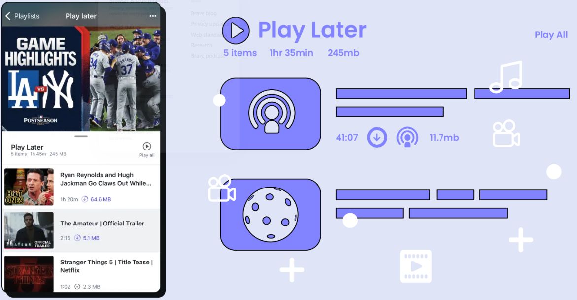 Nová funkcia v Brave umožní vytvárať vlastné zoznamy skladieb (playlisty), teda zoznamy multimediálneho obsahu, ako je napríklad hudba a video alebo podcasty. Podobne máme zoznamy na čítanie alebo záložky. Tu sa bude umiestňovať obsah, ktorý sa dá prehrávať v audio alebo video forme.