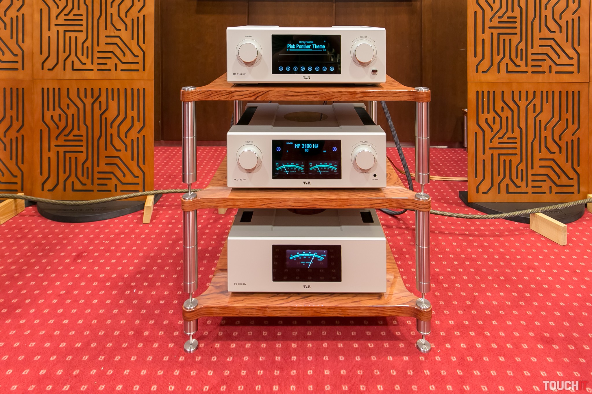 Zostavu tvoril multimediálny prehrávač T+A MP 3100 HV za 13 620 eur, ďalej integrovaný zosilňovač T+A PA 3100 HV za 16 040 eur a zdroj T+A PS 3000 HV za 8980 eur. K tomu ešte treba pripočítať káble so zvláštnou štruktúrou s galvanickým oddelením a samozrejme pár stĺpových reproduktorov Focal Scala Utopia EVO za 15 990 eur (cena za 1 kus). A k tomu celému ešte stolík od slovenskej firmy NEO HighEnd.