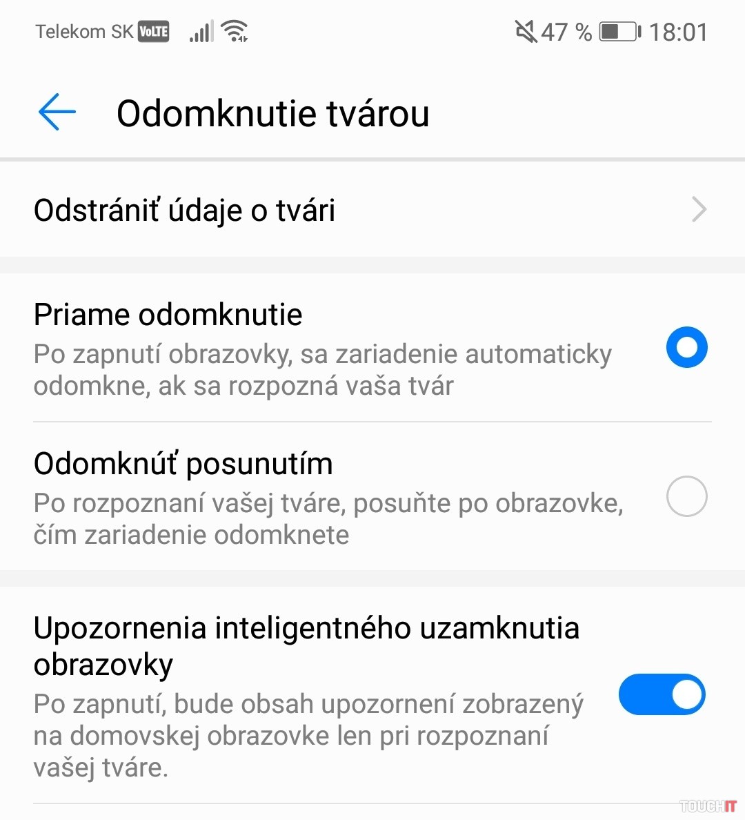 Aktivovali sme funkciu rozsvietenia displeja po zdvihnutí alebo naklonení telefónu. Potom sa rozpoznávanie spustí automaticky a telefón odomkne. Pekné je, že si môžete nastaviť, či sa telefón hneď odomkne alebo odomkne ale bude treba prejsť prstom po displeji. Každému bude vyhovovať iný systém.Operačný systém