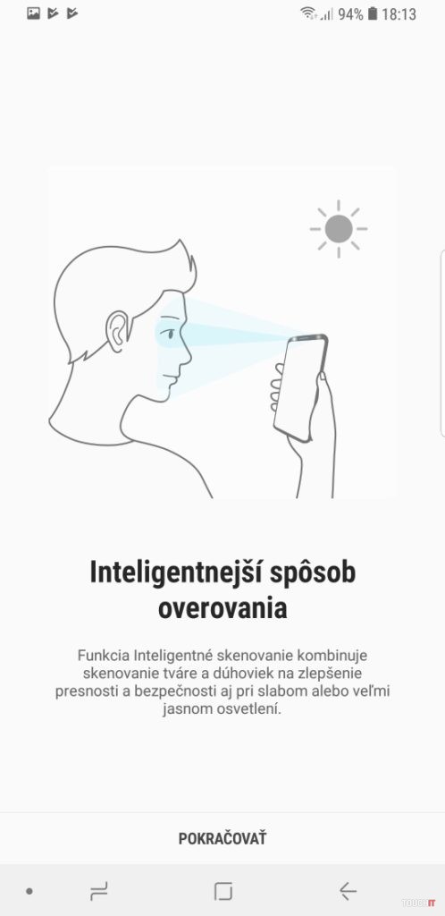 No, Face ID od Applu to nie je. V každom prípade je to technológia Inteligentné skenovanie istým vylepšením, ako zachovať bezpečnosť a zrýchliť rozpoznávanie. Kombinuje v sebe skenovanie dúhoviek a vašej tváre. Funguje, aj v tmavých podmienkach a dokonca netreba telefón ani veľmi dávať do kolmej polohe, ako sa píše na obrazovke počas rozpoznávania. Stále je to však niečo, čo sme si vyskúšali zo zvedavosti. Tento spôsob bol pre nás pomalý a nepraktický. Po dvoch dňoch sme sa vrátili k čítačke odtlačkov. Tá je super rýchla a zatiaľ fungovala 100 %-tne. Jej umiestnenie tomu dosť napomáhalo a odomykanie odtlačkom sa nám na S9+ osvedčilo.