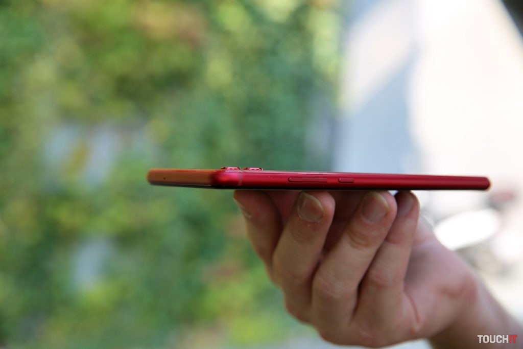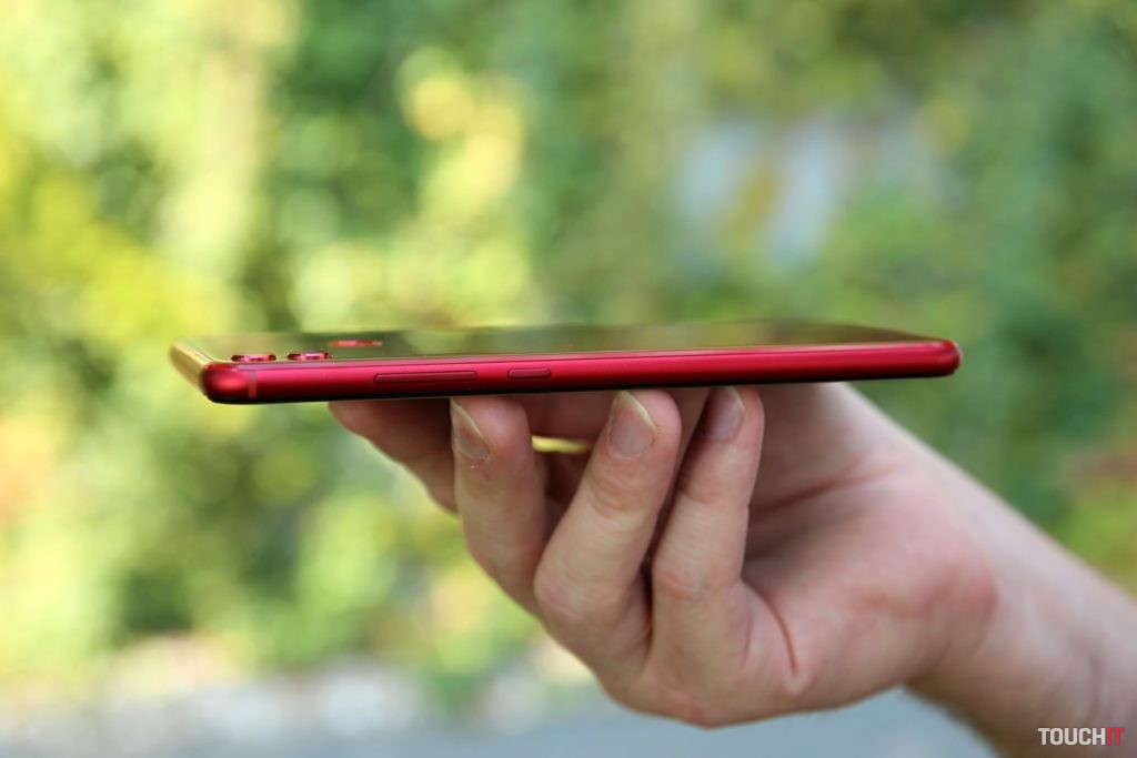Šmýka sa poriadne, nuž aj to je daň za dizajn a 2.5D sklo na prednej a zadnej strane. Bočnú hranu tvorí zaoblený rámik s matnou farbou. Vynikajúca kombinácia a v červenej si ho skrátka zamilujú všetci. Čítačka odtlačkov je na zadnej strane.
