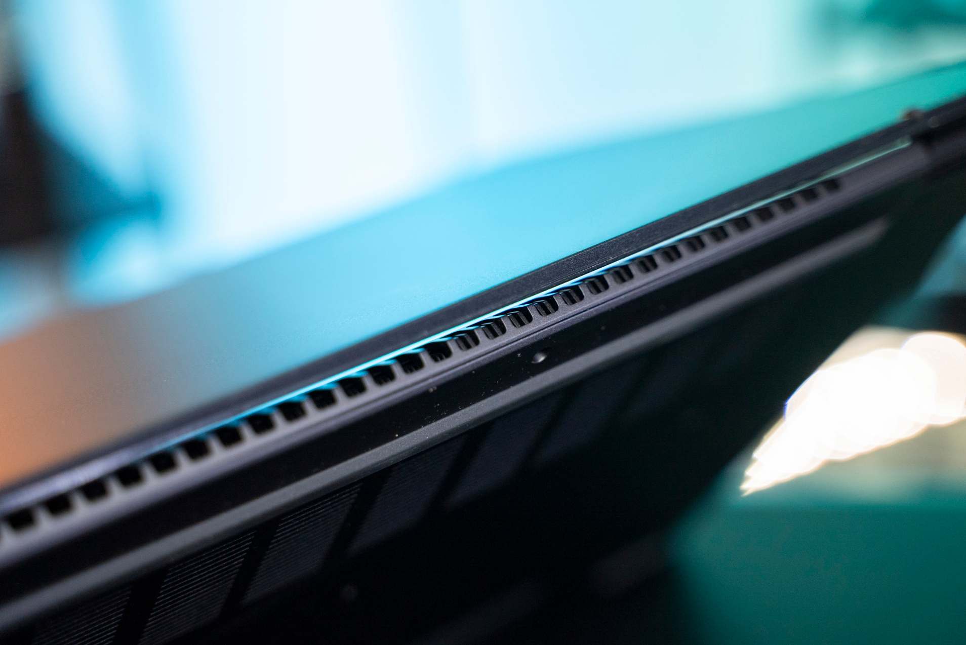 120 Hz OLED displej je vynikajúci, no treba počítať s odleskami. To je snáď jediná nevýhoda tohto displeja. Výrobcu treba pochváliť za použitie kĺbu, ktorý sa dá otvoriť až na úroveň 180°. To môže pôsobiť ako detail, no vhodným náklonom zabránite odleskom svetiel zo stropu. Svietivosť displeja je v rozsahu 22 cd/m2 – 398 cd/m2.