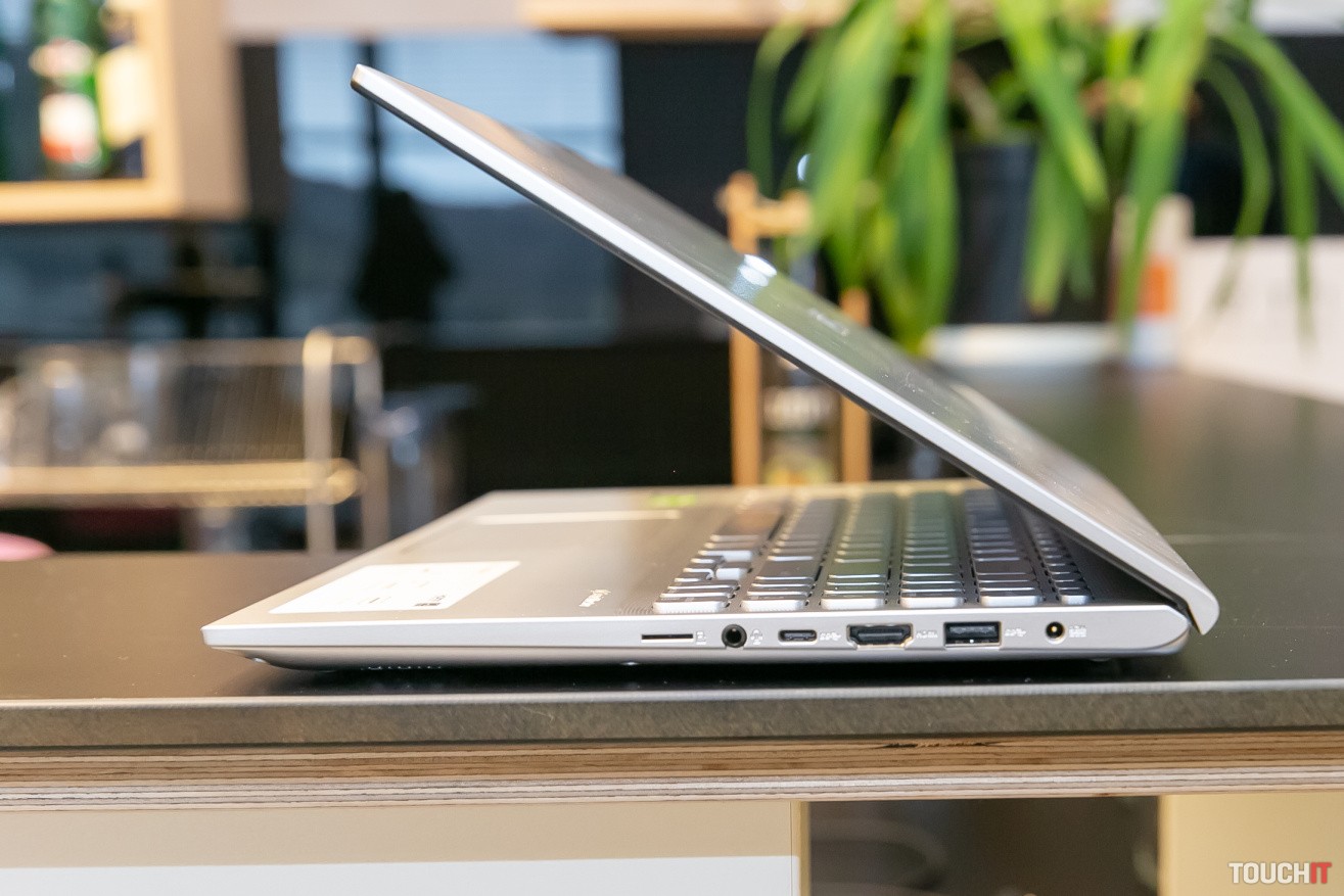 Veko displeja je vyrobené tak, aby po jeho otvorení nadvihlo základňu notebooku. Výrobca tento systém nazýva ErgoLift a zmenu výšky vidíte aj na našich fotografiách.