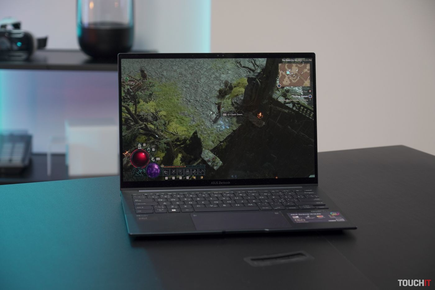 Hlavný prínos procesora Intel Core Ultra vidím v citeľnej dlhšej výdrži batérie na jedno nabitie a tiež aj vo výrazne vyššom grafickom výkone zabudovanej grafickej karty. O výdrži píšem nižšie, avšak na Zenbooku 14 OLED som si počas testovania zahral Diablo IV v rozlíšení 2880 × 1800 pixelov a takisto aj Horizon Zero Dawn vo Full HD. Takýto grafický výkon som od ultratenkého a ľahkého notebooku naozaj nečakal.