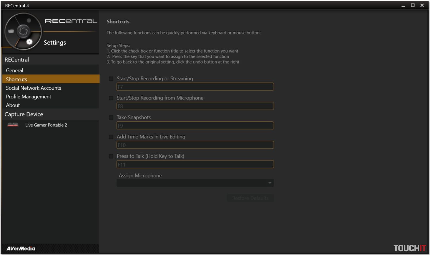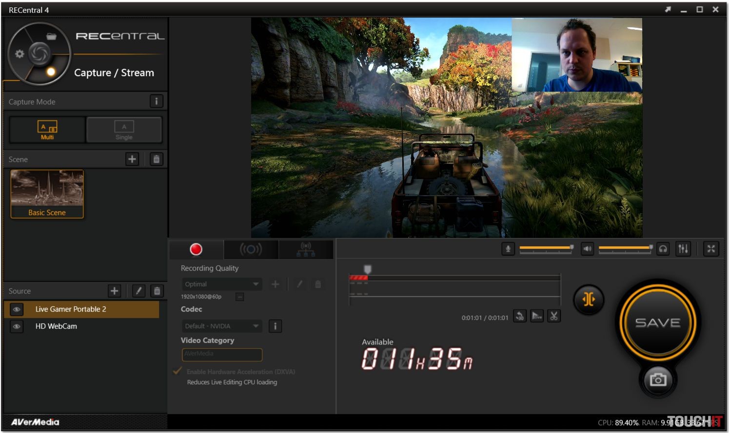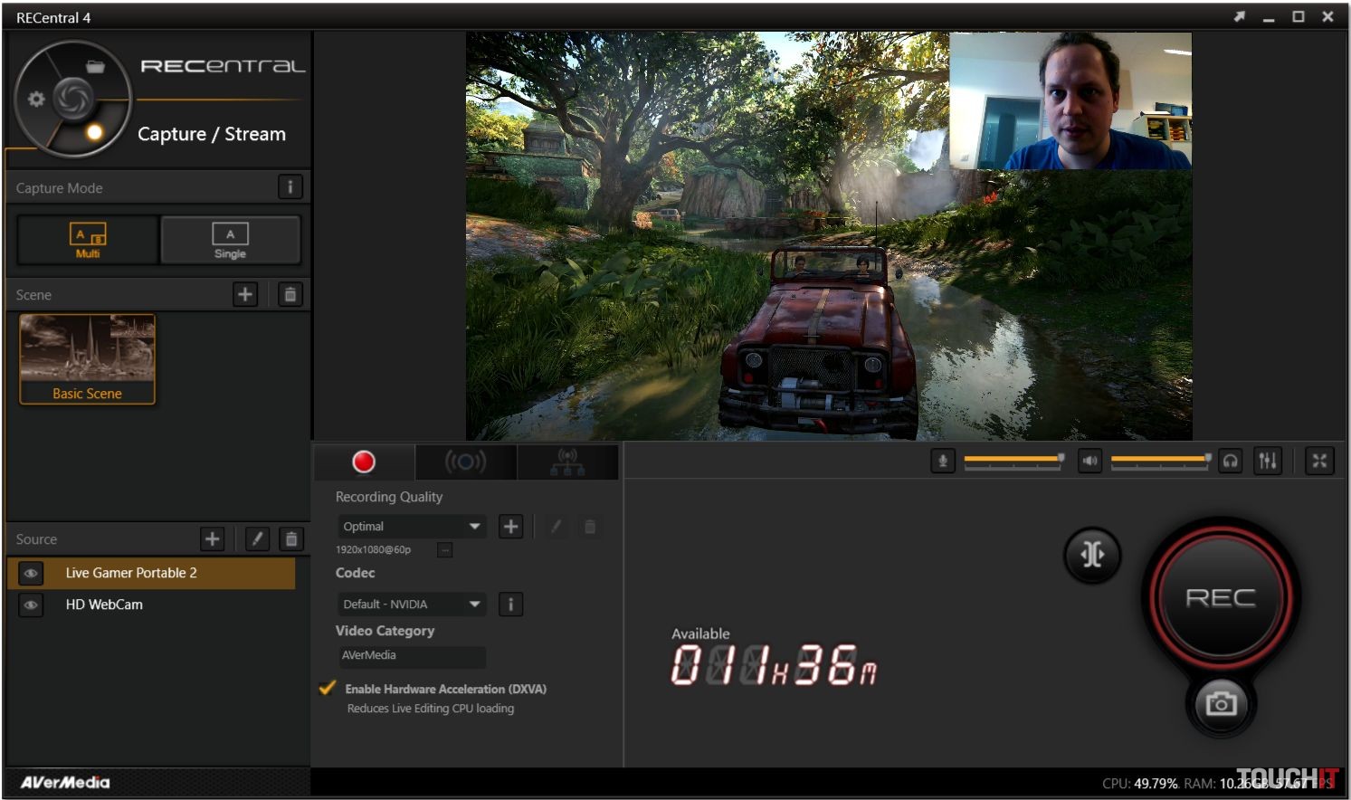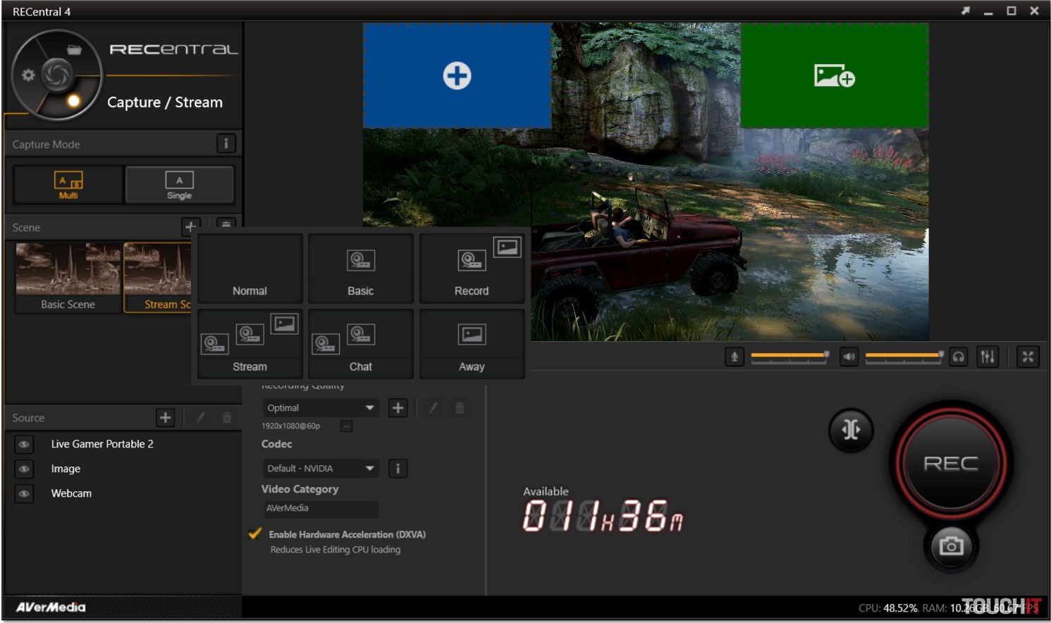 Podstatná informácia je, že Live Gamer Portable 2 môžete používať v dvoch základných režimoch, tretí režim umožňuje iba pristupovať k dátam na microSD karte. Prvý režim umožňuje plnohodnotne využiť potenciál zariadenia, k jeho používaniu však budete potrebovať počítač. V tomto prípade sa totiž zariadenie pripojí k počítaču a komunikuje prostredníctvom oficiálneho softvéru AVerMedia RECentral 4. Vďaka nemu môžete upravovať nastavenia videa a pridávať aj ďalší zdroj obrazu. V praxi to vyzerá tak, že si obraz s hrou doplníte o malý obraz, ktorý napr. sníma webová kamera počítača. Vďaka tomu môžu diváci sledovať na videu zábery z hrania a tiež aj vaše reakcie a počúvať aj váš komentár. V tomto prípade tiež oceníte spomenuté 3,5 mm jacky na prednej strane zariadenia. Môžete k nim pripojiť slúchadlá s mikrofónom. RECentral 4 je na funkcie bohatý softvér. Ponúka viacero nastavení kvality, tá najvyššia je vo Full HD pri 60 fps. V prípade streamovania sa môžete priamo cez RECentral 4 prihlásiť do služby ako Twitch, Ustream, YouTube, Facebook či Mixer a následne jedným stlačením tlačidla aktivovať streamovanie. Počas testovania sme vyskúšali streamovať na Facebook, fungovalo to bez problémov. Tiež si môžete prispôsobiť nastavenie hlasitosti jednotlivých zdrojov a je praktické, že streamované video si môžete priamo ukladať aj lokálne do počítača. Druhý režim, v ktorom dokáže AVerMedia Live Gamer Portable 2 (GC510) fungovať, nevyžaduje počítač. Zariadenie stačí pripojiť k zdroju napájania cez USB a stlačením zabudovaného tlačidla môžete aktivovať záznam videa z hrania na vloženú microSD kartu. V tomto prípade nie je možné streamovať a ani nastavovať ďalšie zdroje videa, uloží sa iba záznam z hrania. Počas testovania sme zachytávali video v rozlíšení Full HD pri 60 fps, súbor s 10 minútovým záznamom dosahoval veľkosť 1,34 GB. Dáta z microSD karty môžete čítať jej vložením do počítača alebo prepnutím zariadenia do tretieho režimu – vtedy netreba kartu vyberať, iba zariadenie pripojíte k PC.AVerMedia RECentral 4 je praktický softvér. Všimnite si bohatú podporu streamovacích služieb aj nastavenia videa, ktoré je možné aj priamo editovať