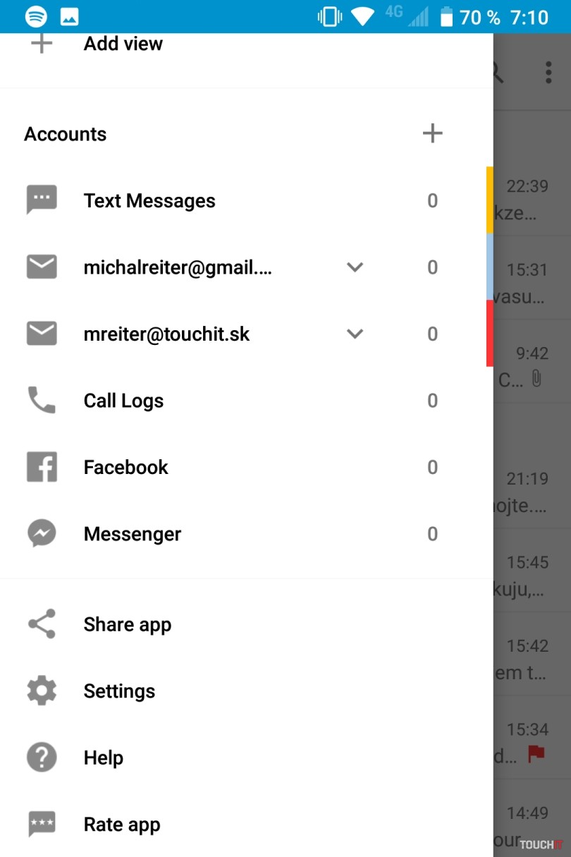 Niektoré nástroje môžete si môžete nainštalovať aj vy do iného smartfónu. Aplikácia Hub funguje zadarmo len po obmedzený čas, inak je spoplatnená. Ide ale o jednu z najlepších aplikácií pre Android. Združuje účty veľkého množstva služieb a všetky chaty, emaily, SMS atď. vidíte v zozname ako keby ste pozerali emaily. Farebné prúžky na boku každého riadku uľahčia rozpoznanie do akého konta prišiel email či správa. Všetko si nastavujete sami. Dobrá appka, vyskúšajte ju aj na svojom smartfóne. Stiahnete si ju priamo z Google Play. Súčasťou hornej lišty je prístup do chránenej zóny Private Zone. Je to miesto, kam môžete ukladať súbory a budú chránené novým kódom alebo vašim odtlačkom. Nechýba nočný režim displeja alebo napríklad integrovanie utility Privacy Shade. Stačí potiahnuť tromi prstami nadol a aktivuje sa kruh alebo úzky prúžok, ktorý obmedzí viditeľnosť na displeji. Len v kruhu alebo obdĺžniku cez displej bude vidno jeho obsah. Dá sa meniť veľkosť, posúvať ho po displeji alebo meniť intenzitu zatmavenia zvyšku obrazovky. Vhodné vtedy, keď chcete niekomu nechať odpísať napríklad tel. číslo ale nechcete, aby uvidel na displeji viac. Napríklad nejakú notifikáciu z Messengera na Facebooku. Systém ako taký vychádza z čistého Androidu. Ponúka ale napríklad použitie widgetov odlišným spôsobom. Nepotrebujete si nimi plniť obrazovku. Každá ikona, po ktorou sú tri bodky, má widget. Stačí z ikony potiahnuť prst na hor a widget sa zobrazí v plávajúcom okne. Pri prvom použití si definujete, aký typ chcete pri potiahnutí nahor zobraziť. Zaujímavosťou je aj nástroj Redactor. Ide o začierňovací nástroj. Stačí ho zapnúť a hneď začierniť časti, ktoré nechcete mať viditeľné. Potom môžete obrázok zdieľať. Praktické. Obsah recenzie- Konštrukcia a hardvér