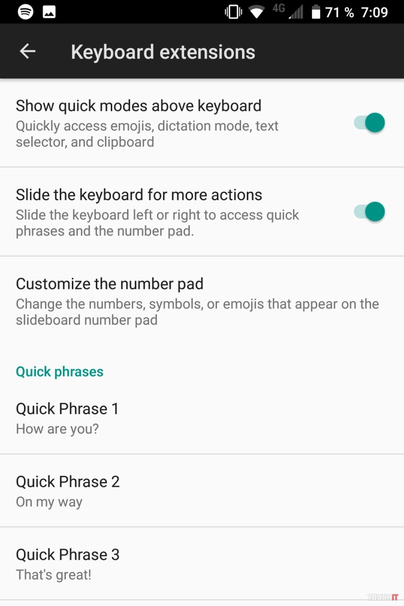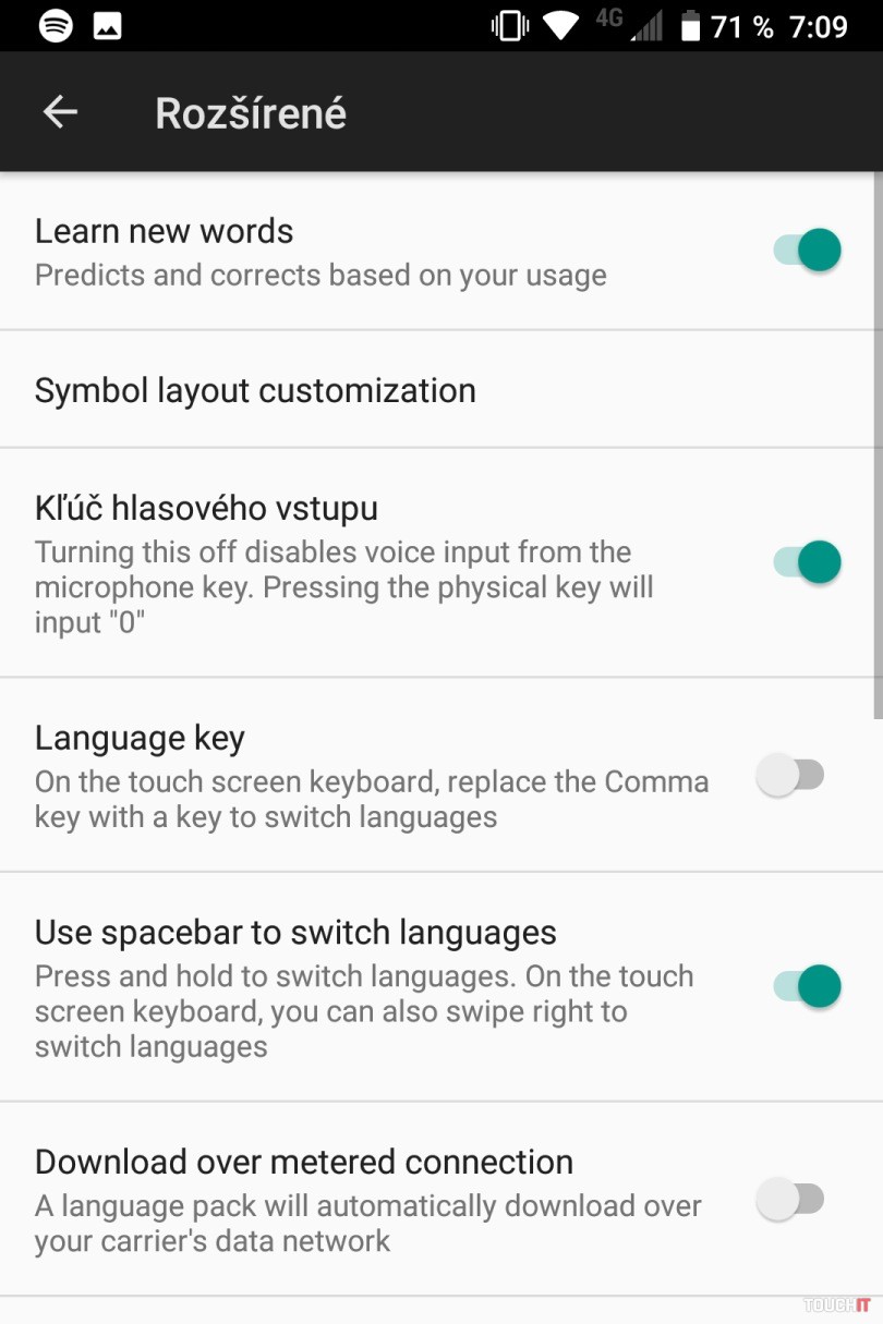 Je plne prispôsobiteľná. Funguje ako touchpad. Teraz je systém ešte viac vylepšený a môžete s ňou rolovať ešte viac aplikácií. Stačí mať zapnutý prehliadač alebo Facebook či iné okno s rolovacím obsahom a posúvať prstom po klávesnici nahor alebo nadol. Obsah sa bude rolovať. Je to príjemné a dobre sa takto telefón ovláda. Navyše si prstom nezakrývate displej. Displej má len 4,5“. „Len“. Je inak dosť veľký, keď vám ho vôbec neprekrýva virtuálna klávesnica. Pri písaní máte vlastne väčšiu viditeľnú plochu ako na takmer každom smartfóne s Androidom. Najlepšie funkcie klávesnice:- Príjemné podsvietenie
