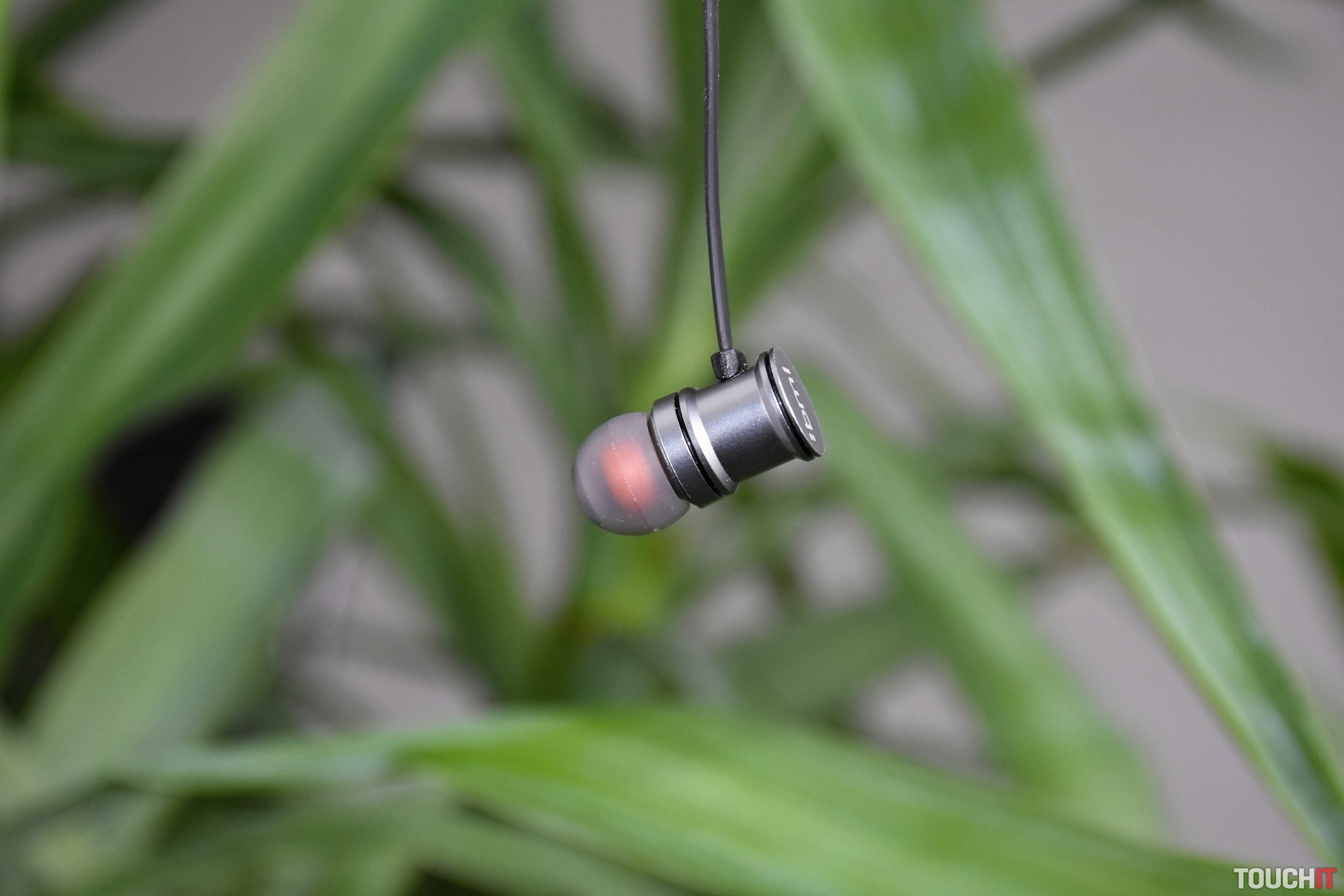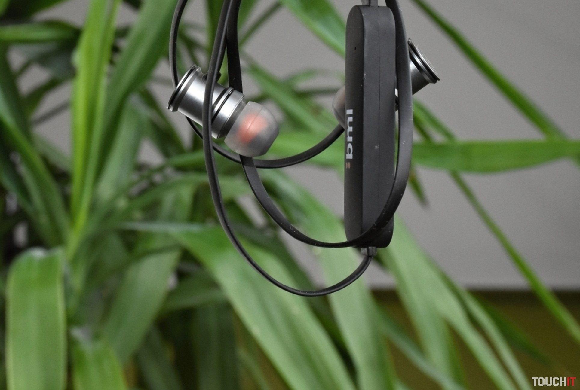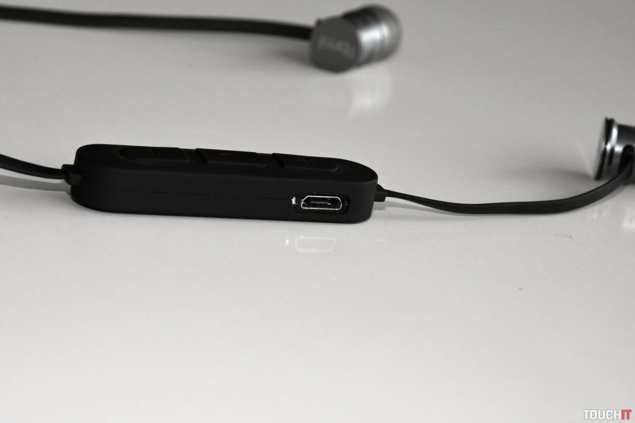 Výrobca spojil ovládací prvok a batériu do jedného prvky. Na kábli nemáte dva plastové prvky, ako to zvykne pri tomto type slúchadiel bývať. Na jednu stranu je to pohodlnejšie. Za krkom nemáte žiadnu plastovú vec, ktorá by ukrývala batériu. No tým, že je všetko sústredené na kábli bližšie k plastovej mušli, je to zároveň trochu ťažké. Nestávalo sa nám, že by slúchadlo vyslovene vypadávalo, pri väčšom sústredení sme ale pociťovali vyššiu hmotnosť.