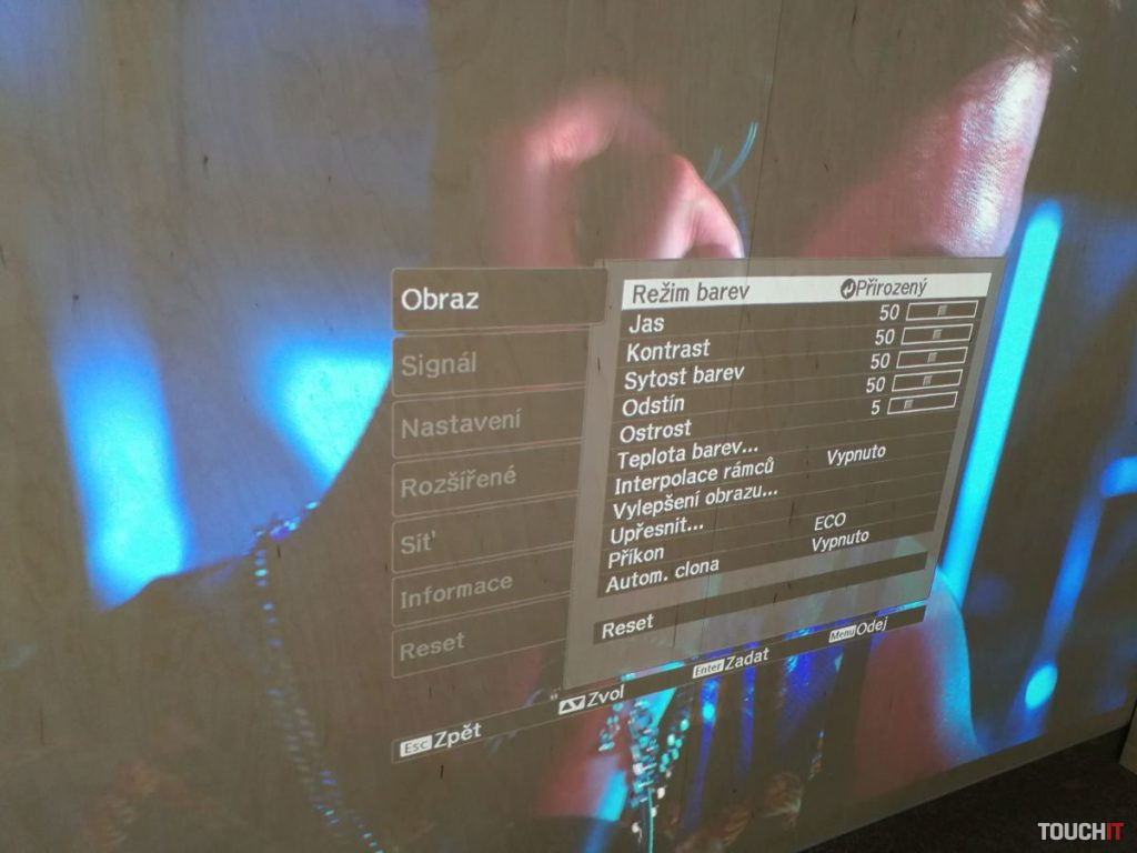 Portová výbava je štandardná a obsahuje dvojicu HDMI vstupov (aj s podporou MHL), VGA vstup a kompozitné audio a video. Nechýba ani jeden USB 2.0 port. Projektor má v sebe zabudovanú aj podporu bezdrôtového prenosu, podporuje napr. štandard Miracast. Môžete teda jednoducho zrkadliť obraz z Android zariadení alebo z Windows počítačov. Medzi jednotlivými režimami sa musíte prepínať pomocou diaľkového ovládača, pričom projektor podporuje aj režim obraz v obraze. Vtedy si môžete súbežne premietať obraz z HDMI vstupu aj cez zrkadlenie. Zvolíte si zdroj zvuku. Čo sa používania projektora týka, po rýchlej a jednoduchej inštalácii si upravíte nastavenie formátu obrazu pomocou lichobežníkového nastavenia a to horizontálne aj vertikálne. Čo sa ostatných nastavení týka, nechýba prispôsobenie farieb, kontrastu a ostrosti. V rámci vylepšenia šumu je možné prispôsobiť potlačenie šumu, ale počas testovania sme nemali potrebu tieto nastavenia meniť. Projektor dokáže prehrávať aj 3D obraz, 3D okuliare však nie sú súčasťou balenia. K dispozícii sú režimy Dynamický, BrightCinema, Prirodzený, Kino, 3D dynamický a 3D kino. Vo výbave nechýba praktický diaľkový ovládač.Epson EH-TW5350: možnosti nastavenia a diaľkový ovládač