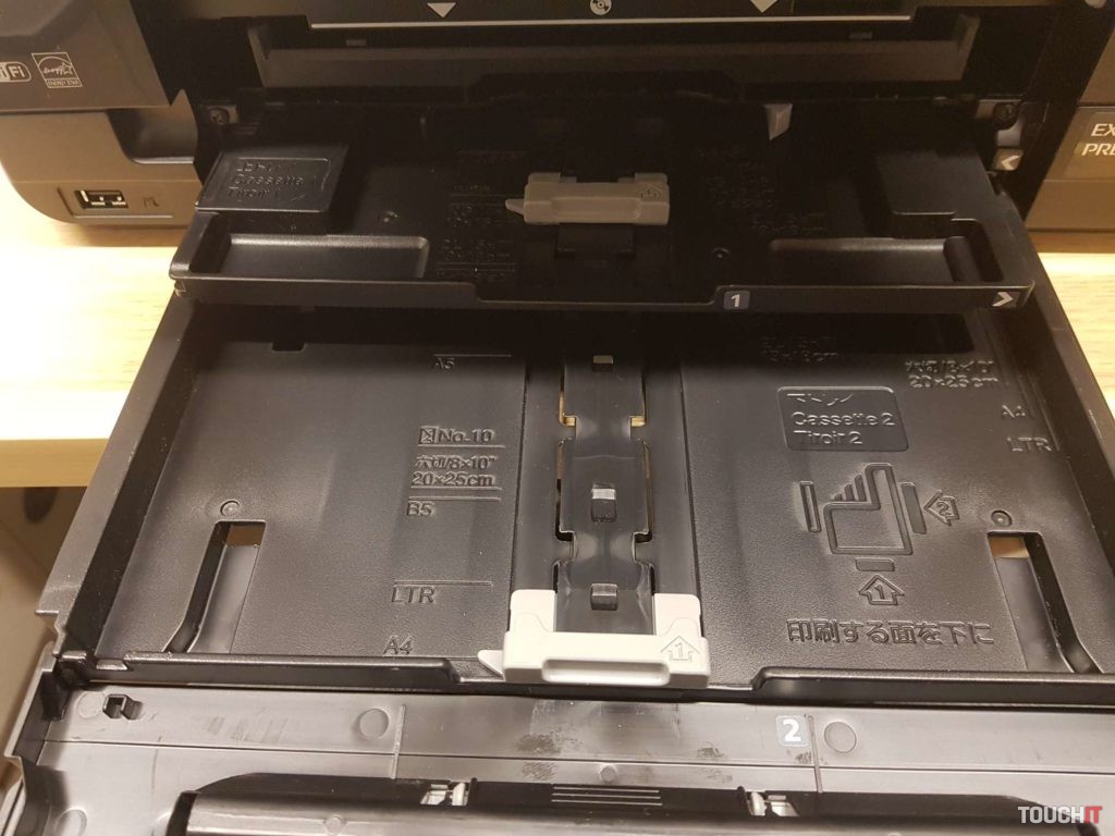 Výbava je zložená presne v duchu konkurenčného modelu. Teda s plochým skenerom, možnosťou kopírovania, ale najmä zamerania na tlač fotiek. Nemusí ísť len o fotografie. Zariadenie sa hodí tam, kde potrebujete striedať typy tlačených dokumentov. Aj preto sme ocenili dva zásobníky. Nie sú veľkokapacitné, čo pri výťažnosti a nasadenia do menšej kreatívnej kancelárie aj chápeme. Na tejto multifunkcii sa dajú potlačiť aj CD/DVD. Ešte stále pomerne nadštandardnou je automatická tlač na obe strany papiera. Do vstupného zásobníka sa zmestí 100 listov formátu A4 a 20 listov fotografického papiera. Zariadenie, ktoré používa na tlač 5 samostatných atramentov, má piaty atrament v podobe fotografickej čiernej.