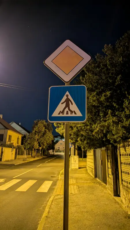 Nočný režim je ale už samostatná kapitola. Nočné snímky z hlavného fotoaparátu sú podľa mňa aj napriek slabšiemu fotoaparátu v porovnaní s Pixelom 10 lepšie, telefón si lepšie poradil s nočnou oblohou a tiež s protisvetlom, vyváženie bielej je lepšie. Naopak Pixel 9 vyhráva vo vyobrazení detailov v nočnom režime. Cenou lepších detailov v Pixeli 9 sú ale scény, na ktorých sa nachádzajú farebné škvrny namiesto konzistentnej tmavej na oblohe. Pixel 10 však dokázal dobre zachytiť scény aj na miestach, kde som sama dobre nevidela, čo mám pred sebou, telefón dokázal zachytiť scény ako by boli fotené počas dňa.
