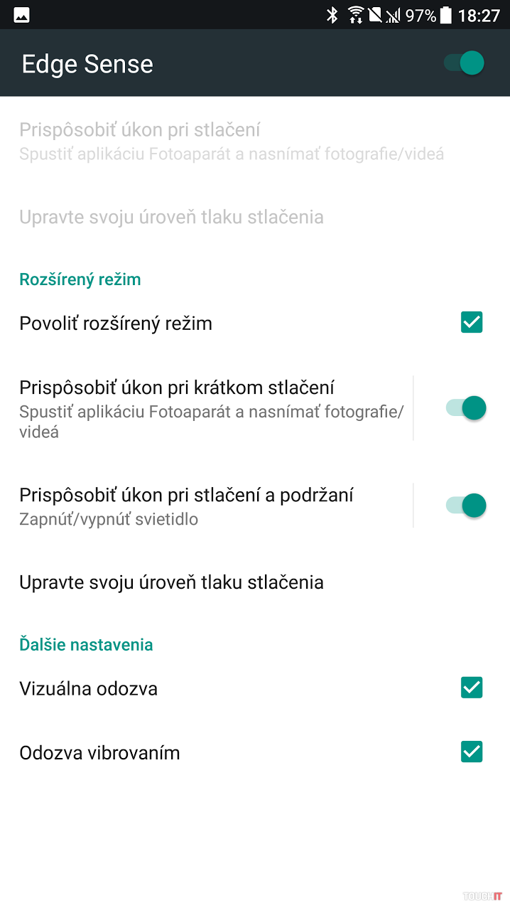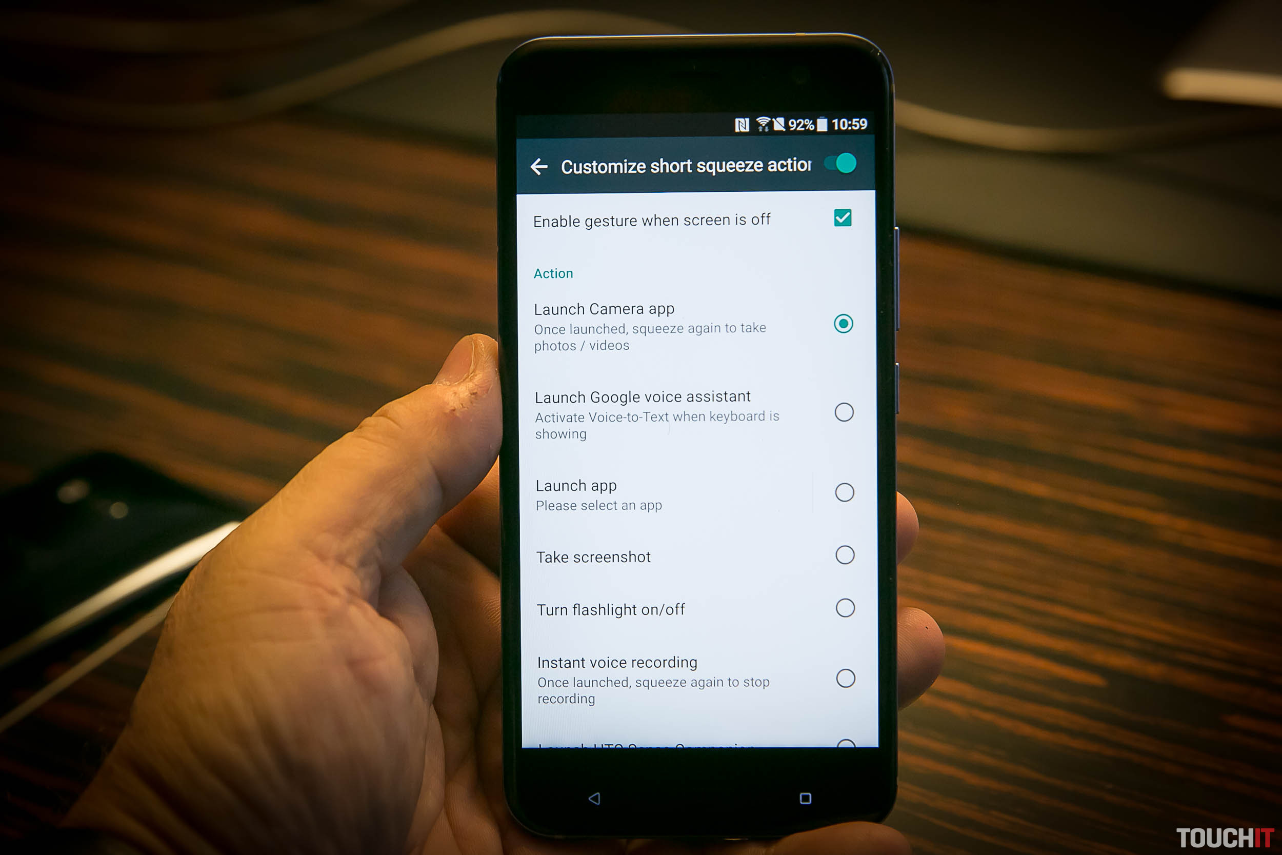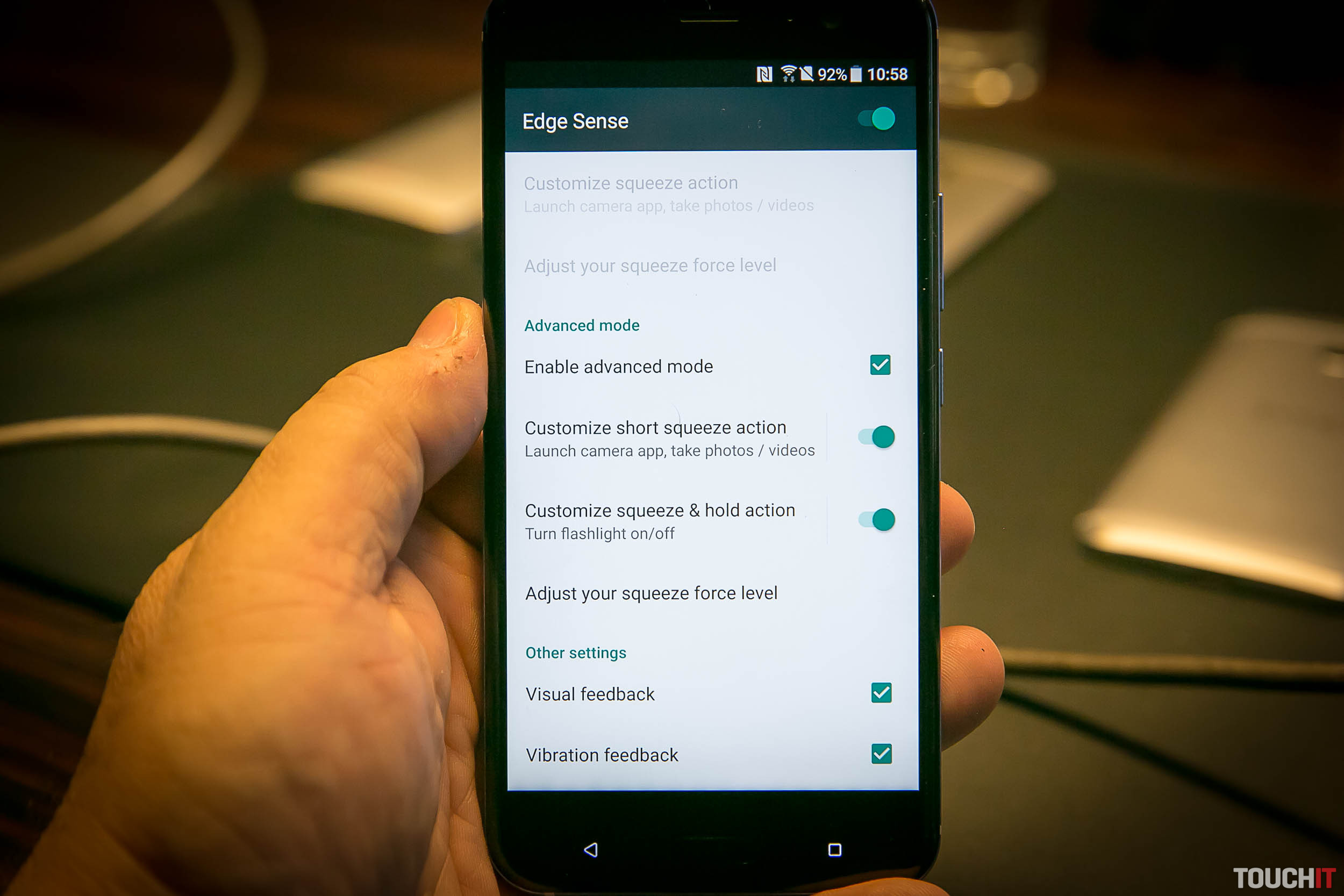 Edge Sense si takisto v rámci prvého spustenia telefónu prispôsobíte. Telefón dokáže rozoznať niekoľko úrovní stisku, my sme preferovali citlivejšie nastavenie. Úroveň tlaku je dodatočne možné zmeniť a takisto je možné aktivovať rozšírený režim, kedy telefón reaguje na krátke a dlhé stlačenie a podľa toho vykoná jednu z dvoch akcií. Krátke stlačenie sme používali na spustenie fotoaparátu a dlhé stlačenie aktivovalo svetlo. Medzi ďalšie dostupné skratky patrí spustenie hlasového asistenta, rýchle spustenie vybranej aplikácie, vytvorenie screenshotu obrazovky alebo zapnutie nahrávania zvuku či zapnutie/vypnutie Wi-Fi hotspotu. Taktiež je možné nastaviť, či má byť funkcia aktívna pri vypnutej obrazovke. My sme mali toto nastavenie povolené pre rýchle spustenie skratiek. Vypnúť si môžete aj vizuálnu odozvu a vibrácie, ktoré vás upozorňujú na aktiváciu funkcie. Vibrácie sú však užitočnou pomôckou, nakoľko hrany telefónu sú pevné a na ich tvare necítite, že telefón stláčate. Ich tvar sa nemení a v prípade vypnutého displeja sú jedinou spätnou väzbou práve vibrácie. Ako sme už spomenuli, Edge Sense je prakticky doplnok, ktorý sme využívali. Nepovažujeme ho za hlavný dôvod, prečo si kúpiť telefón, ale ide o jednu z inovácií, ktorá sa dá reálne využívať aj počas každodennej práce s telefónom. Nastavenie svetla je naozaj praktické a zvykli sme si takýmto spôsobom aktivovať aj fotoaparát – a to aj napriek tomu, že rýchlo ho môžete zapnúť aj dvojitým stlačením tlačidla napájania. Na Edge Sense sme si však rýchlo zvykli.