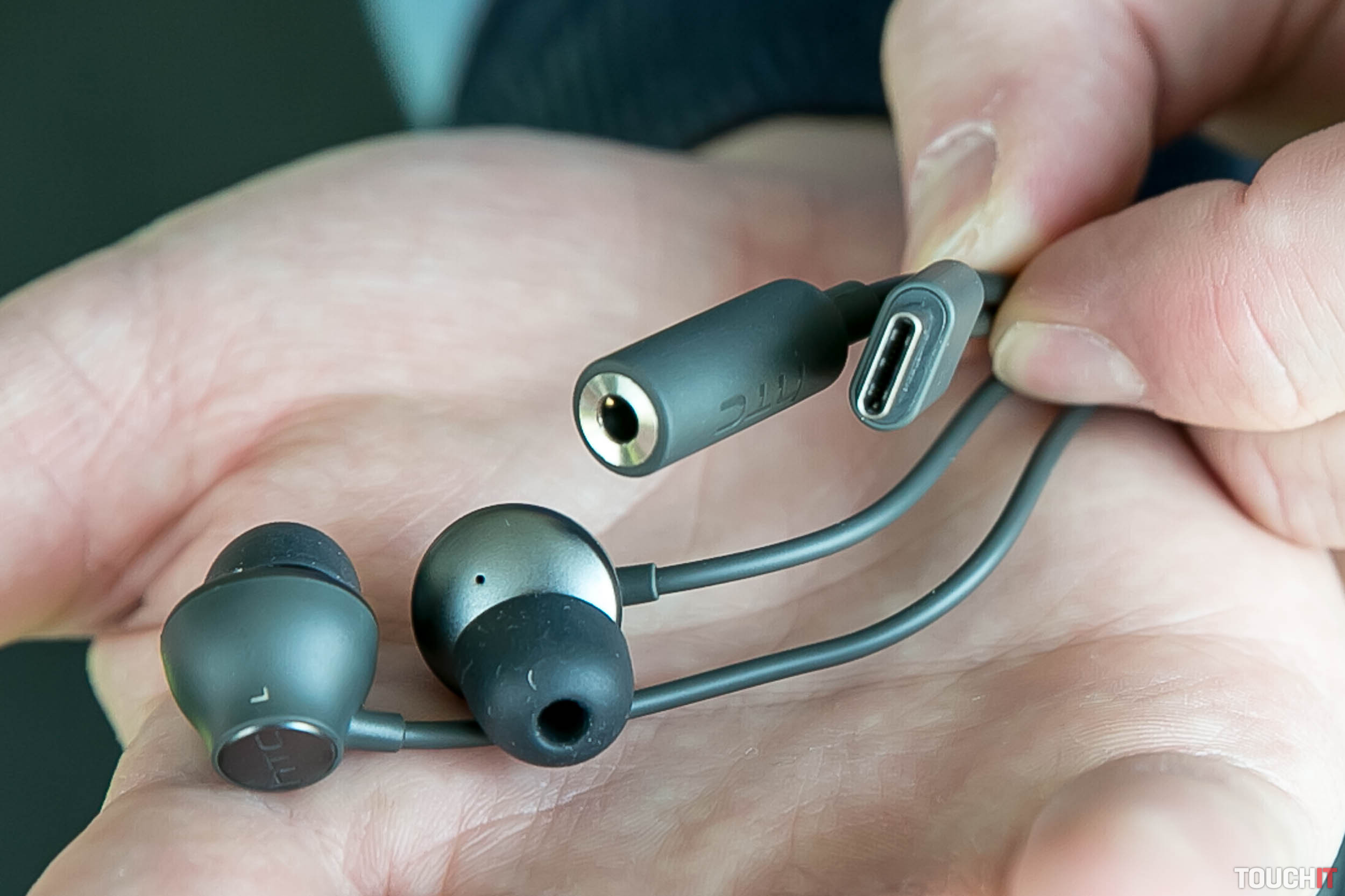 V balení sa nachádzajú USB-C slúchadlá a redukcia z USB-C portu na 3,5 mm jack. BoomSound reproduktory sú na spodnej hrane a v hornom rámiku nad displejom