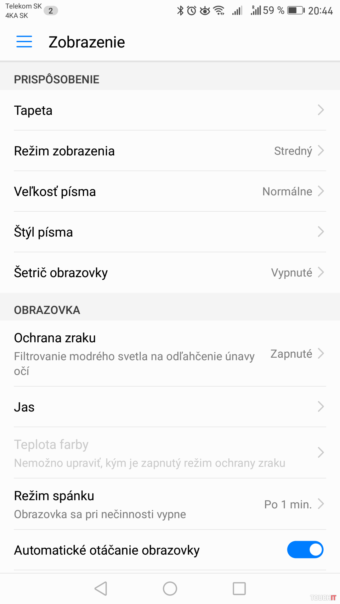 Oceňujeme, že si môžete nastaviť, či sa má / nemá obrazovka zapnúť po prijatí upozornenia. Takisto sa nám páči možnosť meniť veľkosť zobrazenia a možnosť zmenšiť obrazovku pre ovládanie jednou rukou. Obe tieto funkcie ponúkal aj Mate 8. Novinkou je režim Ochrana zraku, čo je zabudovaný filter modrého svetla. Mate 9 síce nevie, podobne ako iPhone, automaticky aktivovať tento režim na základe západu / východu slnka. Ponúka však možnosť nastavenia časového harmonogramu, čo sme využili.